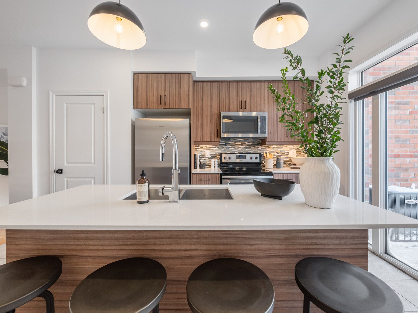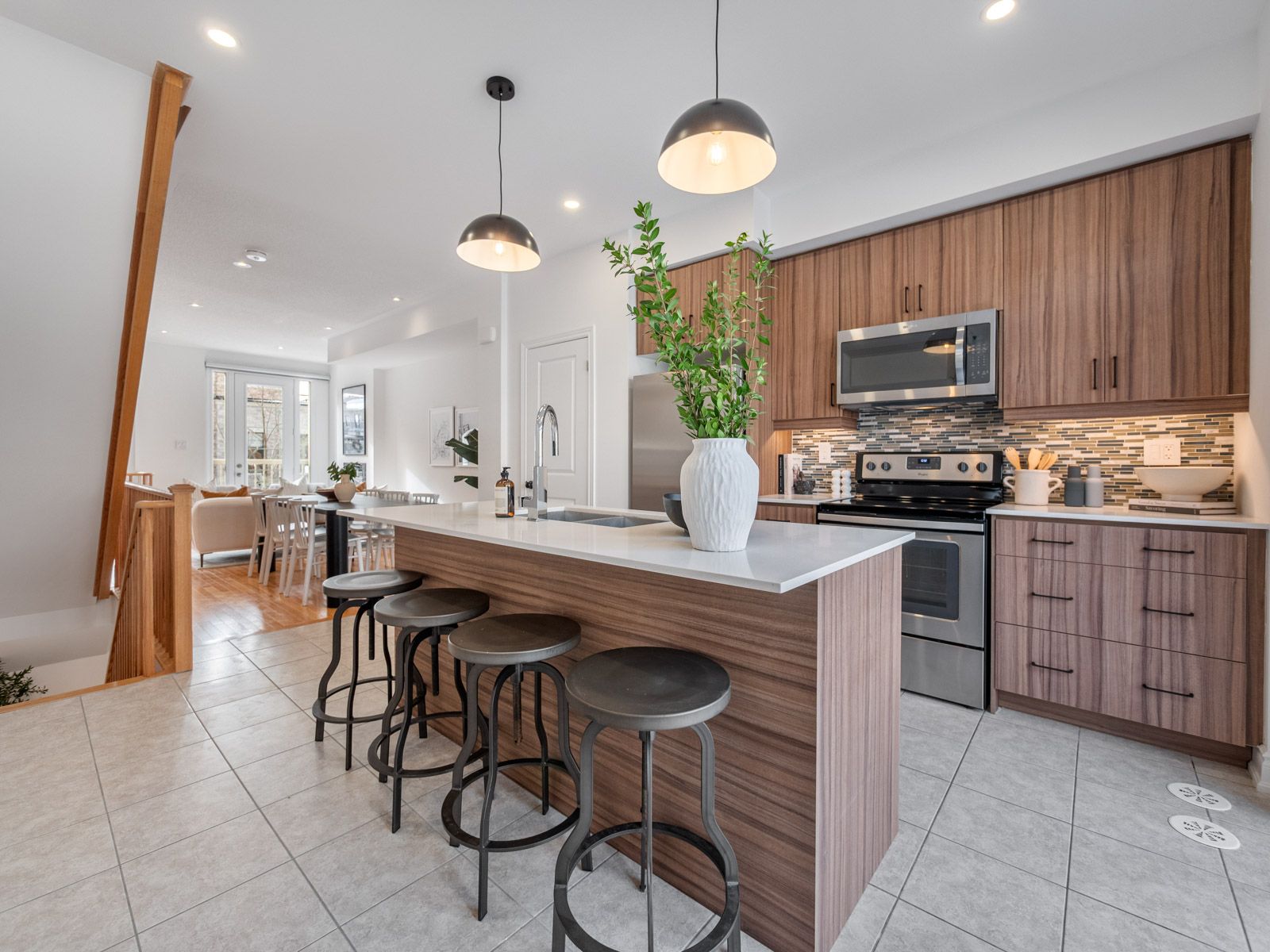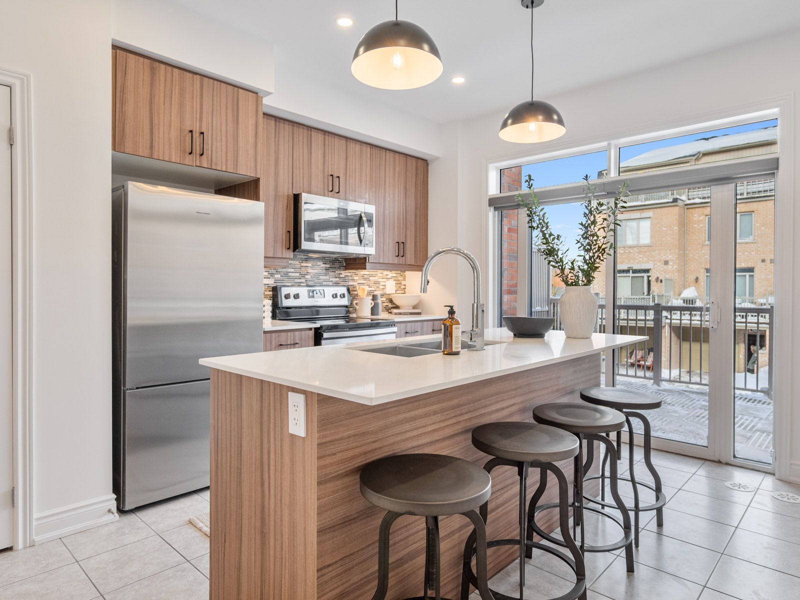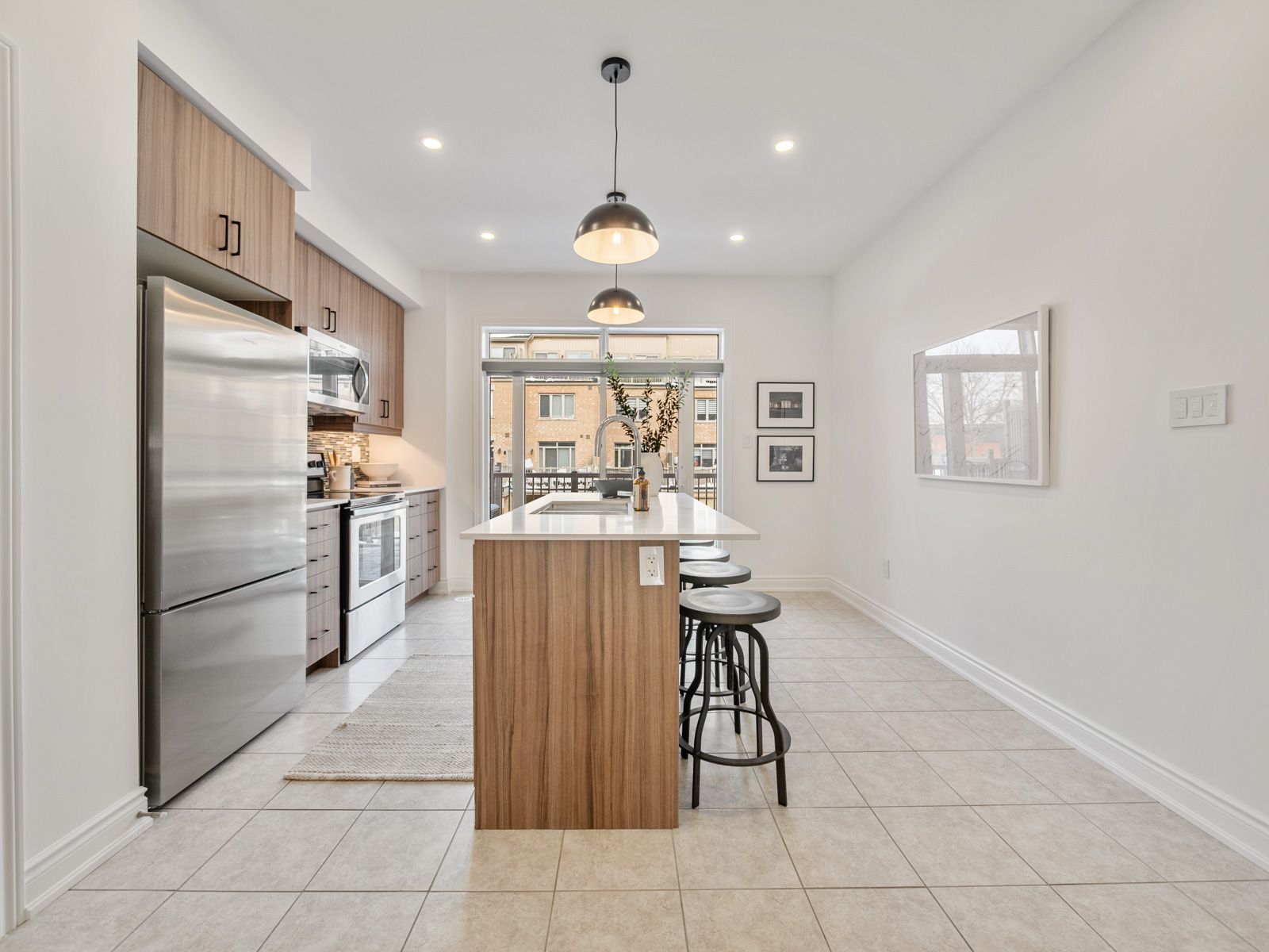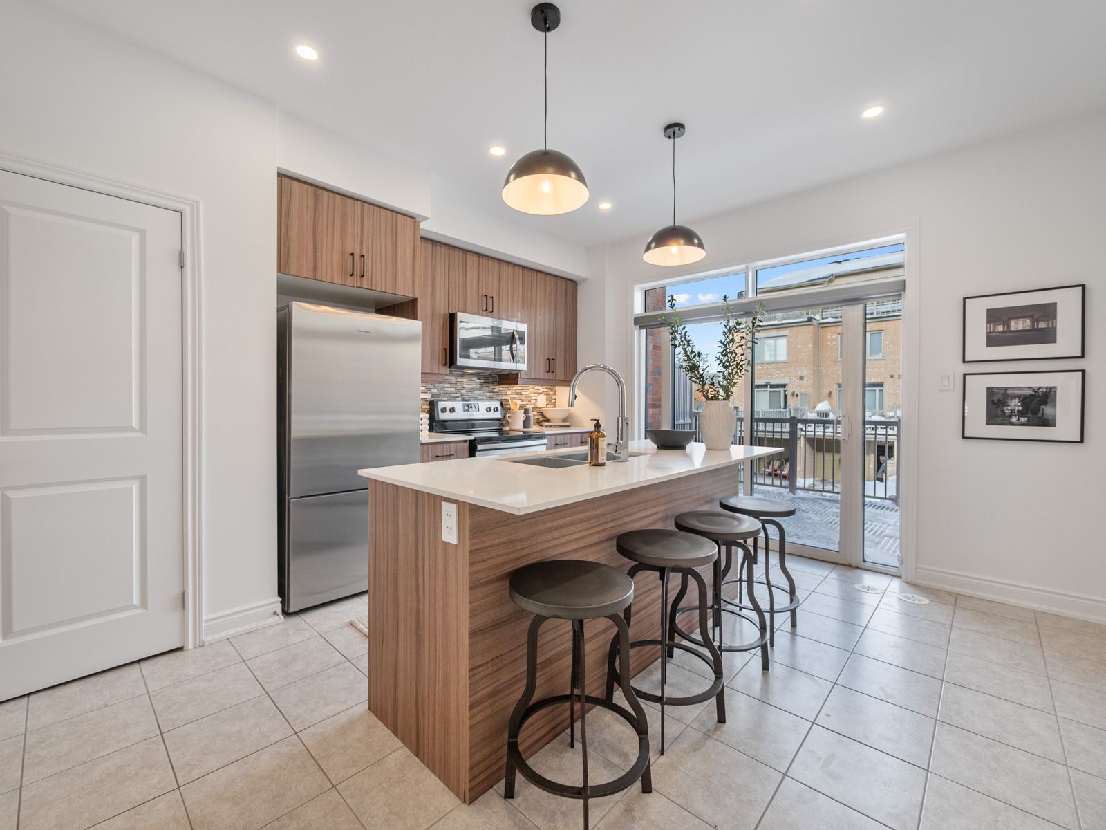 Modern, light-filled executive townhouse offering four well-designed levels in a quiet, established community. The main floor features an airy open-concept layout with hardwood floors, generous ceiling height, a sleek linear fireplace, island seating, stone counters, and a walkout to a large private terrace perfect for dining and entertaining.The second level offers two bright bedrooms, a well-appointed four-piece bath, and a conveniently located laundry area. The top floor is dedicated to a private primary retreat with a walk-in closet, a spa-inspired five-piece ensuite, and a full-width terrace ideal for morning coffee or evening unwinding.The finished lower level provides flexible space for a family room, home office, or gym and direct access to the garage. Park two vehicles with ease-one in the garage and one in the private driveway.This home delivers exceptional convenience with shops, restaurants, parks, top-rated schools, TTC service, and Islington Station just minutes away. Everyday amenities, major highways, and key commuter routes are all easily accessible.Move-in ready and designed for modern living, this townhouse features multiple outdoor spaces, smart proportions, and a location that puts everyday essentials within easy reach. A seamless combination of comfort, convenience, and contemporary design.