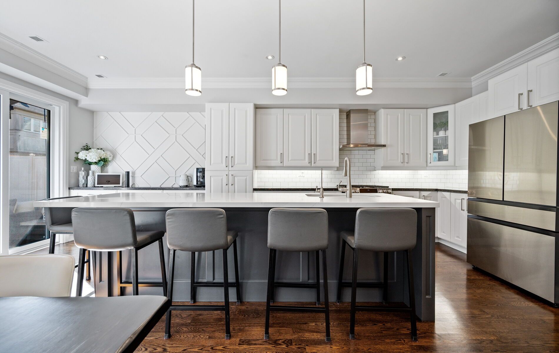 Welcome to this stunning, move-in ready home, completely renovated inside and out, blending modern finishes with timeless charm. Every detail has been thoughtfully updated, creating a turnkey property perfect for families seeking comfort, functionality, and style. The heart of the home is the brand-new kitchen, featuring all-new stainless steel appliances, a custom oversized island, and an extended prep area. Bright, upgraded windows fill the space with natural light, while sliding doors lead to a private deck off the kitchen, complete with composite decking and a new awning-ideal for dining or lounging outdoors. A second expansive upper-level terrace provides additional outdoor living space, perfect for entertaining or enjoying morning coffee in the sun. Upstairs, all-new windows, custom built-in closets, a renovated primary retreat, and a built-in office offer style and functionality for modern living. Renovated bathrooms, decorative shiplap, molding accents, and updated flooring with refinished hardwood and new tile enhance the home's elegance and flow. Additional updates include a newer laundry (2 years old), a mudroom for everyday convenience, new siding, a replaced roof, and freshly painted ceilings across the main and upper floors, ensuring comfort and peace of mind. Set in the highly desirable Humber Bay Shores, this home is just steps from the lake, local parks, and elementary schools, and only minutes from downtown and the yacht club-offering the perfect balance of tranquility and community. With extensive renovations, modern upgrades, and an unbeatable location, 30 Legion Rd is a rare opportunity to own a fully updated home that's truly ready to enjoy