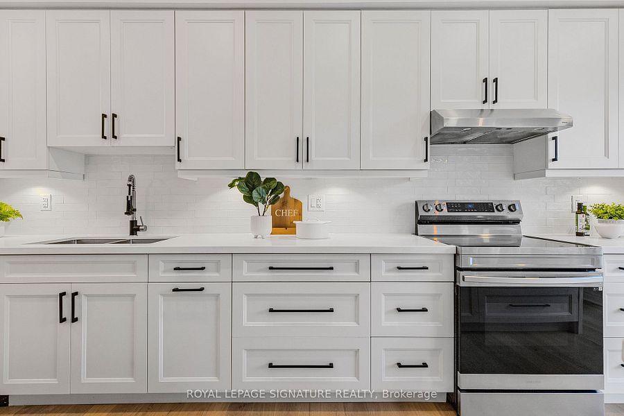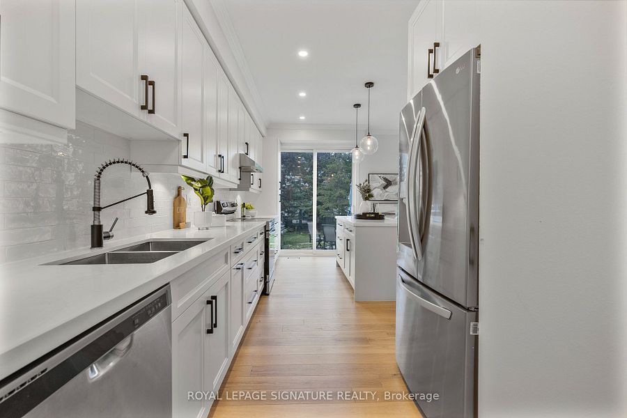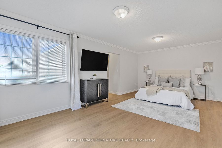 3 Bedrooms Plus an Extra Bedroom in the Basement, Double Garage, and 6 Parking Spaces! This sun-filled corner townhome in Bronte Creek offers the space and comfort of a detached home in one of Oakville's most desirable neighborhoods. Families will love being close to top-ranked schools, scenic trails, and vibrant parks, with quick access to highways, GO Transit, and Oakville Trafalgar Hospital. Inside, the main floor is bright, open, and perfect for entertaining or everyday living. The kitchen features modern appliances, quartz countertops, and ample cabinet space, making it both functional and stylish. Upstairs, the primary suite features his-and-her closets and a spa-inspired 5-piece ensuite. A versatile loft and convenient second-floor laundry add flexibility for modern family life. The professionally finished basement includes an extra bedroom, a large recreation area, and a play space under the stairs specially designed for kids, plus a 3-piece bathroom perfect for guests, movie nights, or family fun. Additional features include a built-in storage area and upgraded flooring throughout the main and upper levels, offering move-in readiness and modern comfort. Outside, enjoy one of the largest backyards in the community, with an interlocked patio ready for summer BBQs, kids play, or quiet evenings.