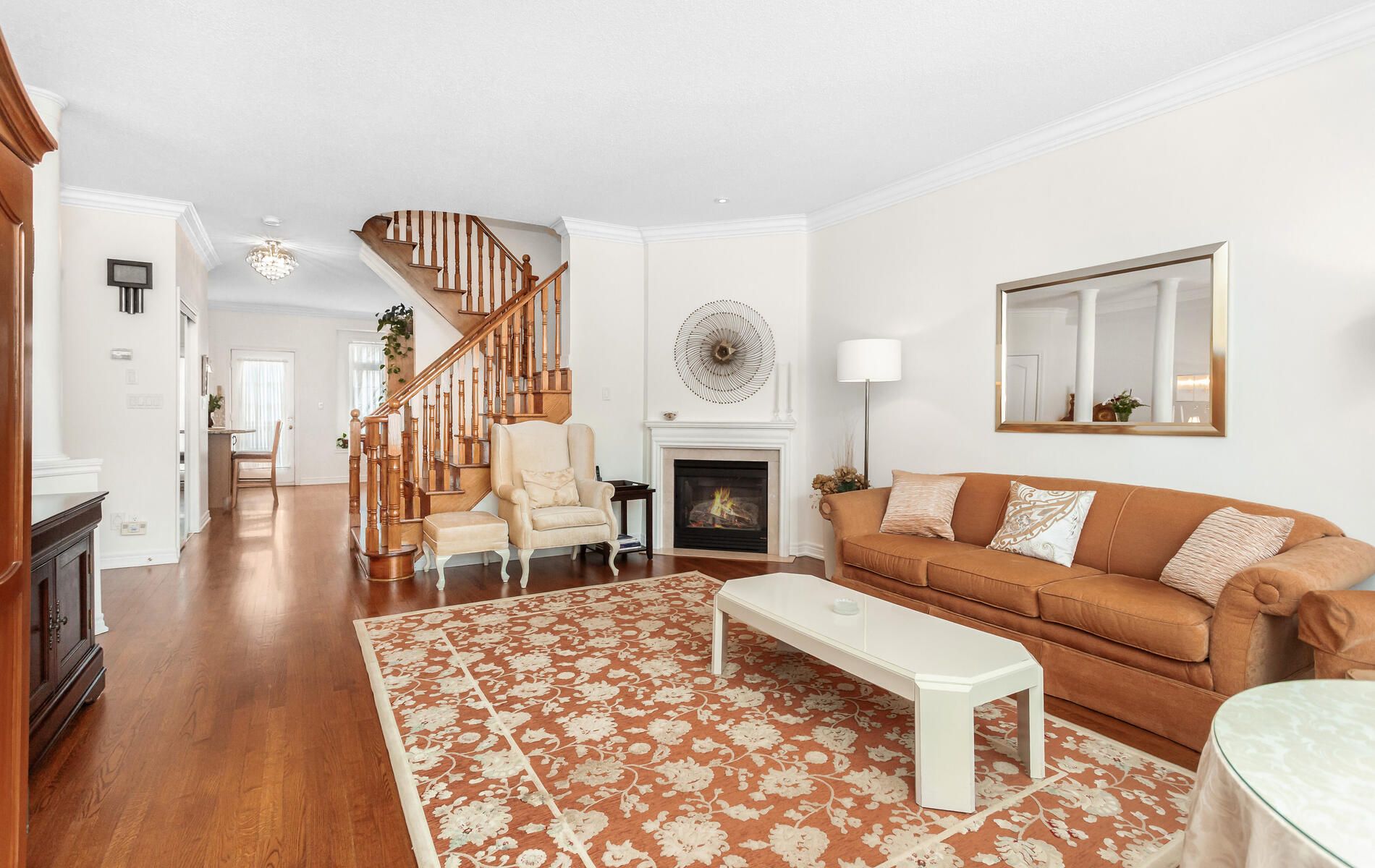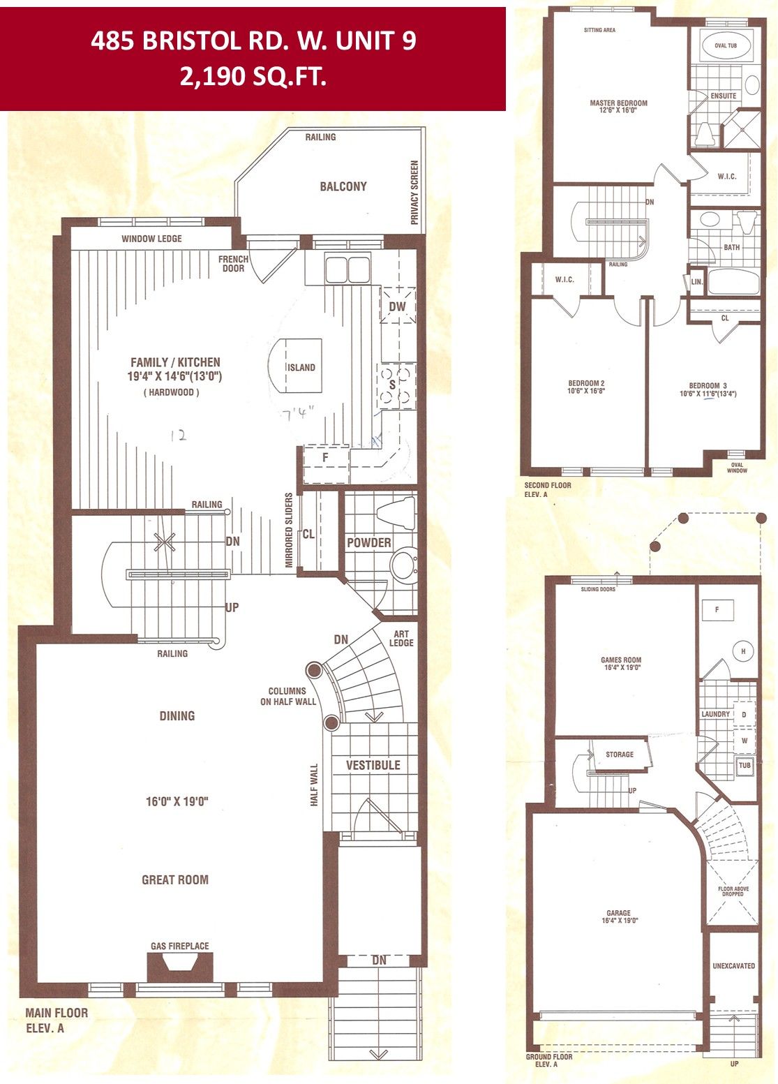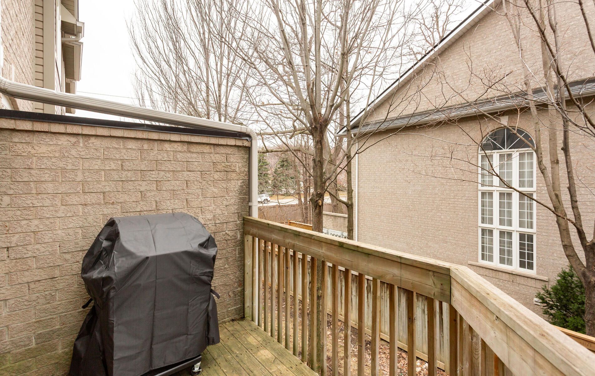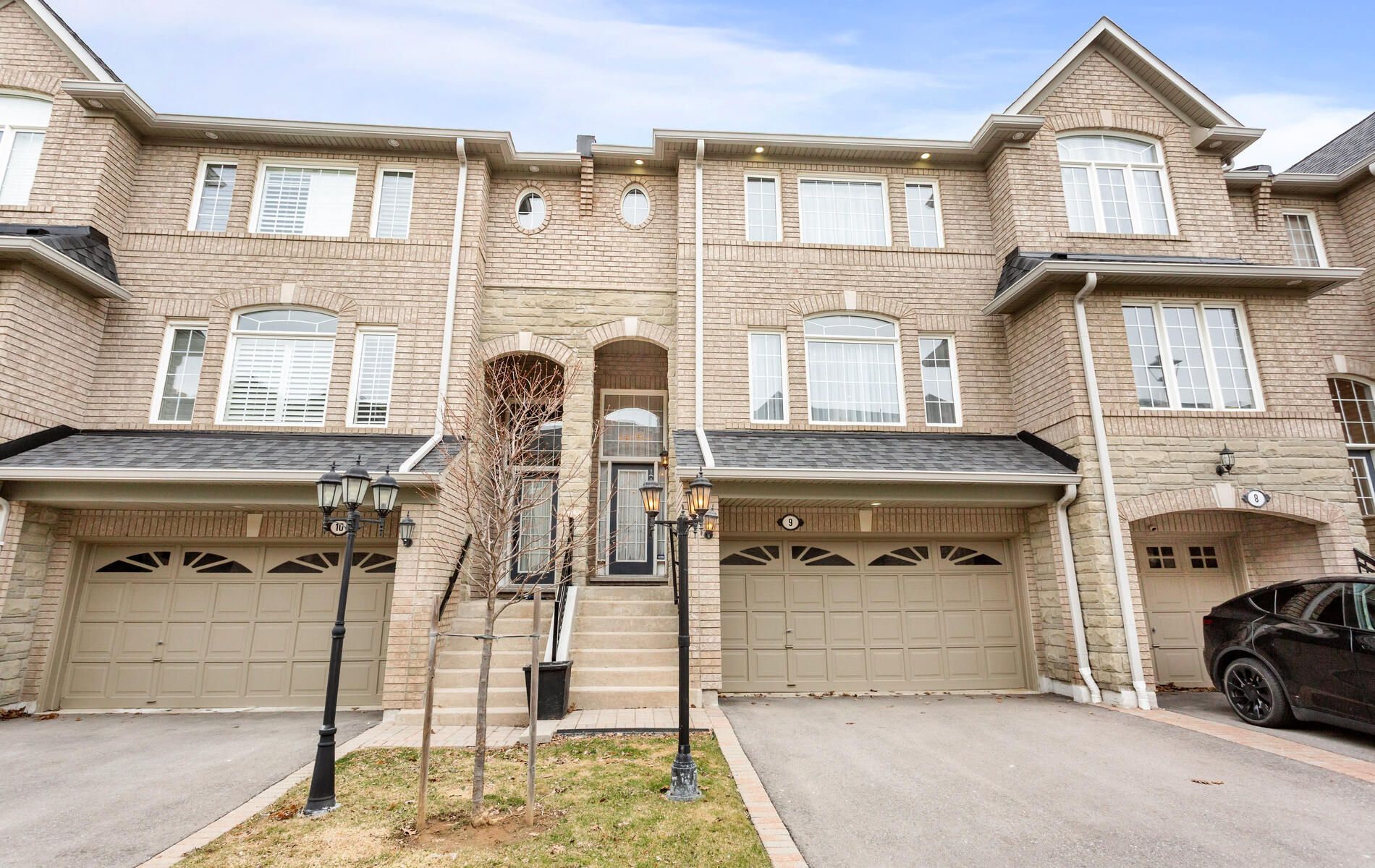 Welcome to Bershire Estates - Centrally located and in close proximity to all city amenities. Situated in the back row of a small 23 unit upscale, well managed, executive complex. Rarely available double car garage with direct entry to unit. Bright & spacious open concept layout with 9 foot ceiling, large windows dispensing natural light throughout, refinished hardwood floors, living room gas fireplace and wired sound system. Completely upgraded with granite counters in kitchen & bathrooms, natural stone backsplash, lighting, flooring, crown mouldings, appliances, etc. The balcony off kitchen provides easy access to BBQ & secluded coffee time while the wired alarm system offers the convenience of 2 entry controls. Walkout from den/games/rec room is ideal for a home gym, office or 4th bedroom. 2,190 sq.ft. per builder floor plan attached (1860 sq.ft. MPAC + 330 sq.ft. games/rec room and landing area). Beautifully landscaped throughout. Private and serene backyard lined by mature maple trees & perennials. This elegantly appointed, stunning home is immaculately kept and barely lived in. In "Like New" condition! ***room measurements are from builder floor plan***