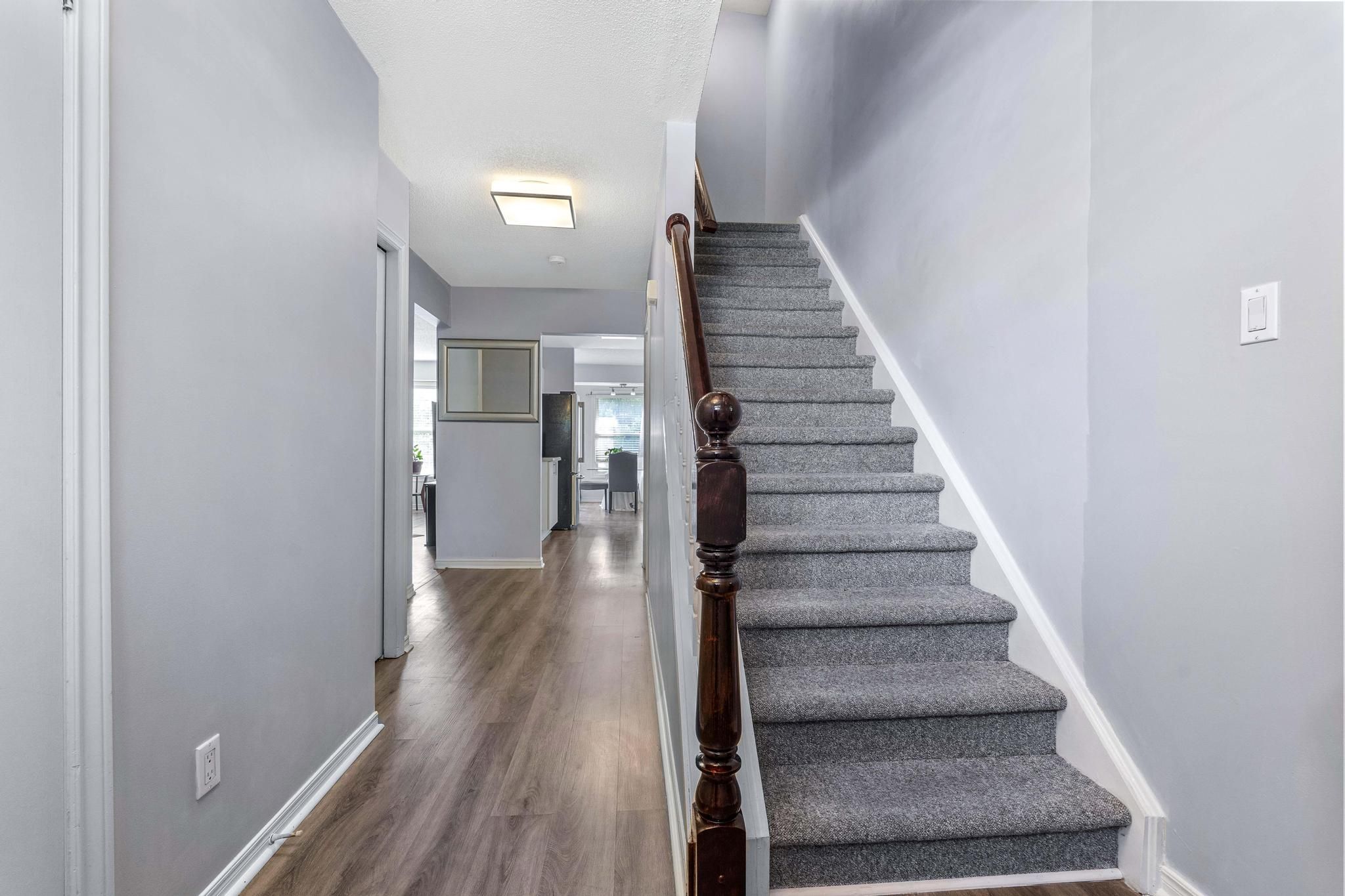 Charming & Spacious 2-Storey Townhome in a Prime Location!This unique and well-maintained townhome offers comfortable family living across two spaciouslevels, featuring 3 generous bedrooms including a primary suite with a private ensuite andwalk-in closet. The other two bedrooms share a full 4-piece main bathroom, ideal for growingfamilies.The main floor welcomes you with a bright and roomy foyer, a 2-piece powder room, and afunctional kitchen complete with a built-in dishwasher and newer stove. A separate dining arealeads out to a private deck-perfect for summer BBQs and outdoor entertaining.The lower level offers a semi-finished rec room with exposed concrete flooring, a laundry area,a cold room, and plenty of storage space. Additional perks include a single-car garage, plusone extra driveway parking spot. Situated in a quiet, family-friendly neighbourhood, this homeis within walking distance to shopping, schools, and offers easy access to Highways 401, 403,and #59.Whether you're a first-time buyer or an investor, this is an excellent opportunity with greatpotential.A must-see-don't miss your chance to make it yours!