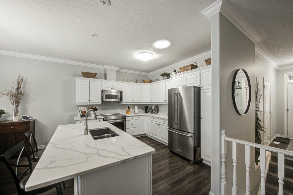 Live the Lifestyle You've Been Dreaming Of! Welcome to this fully renovated bungalow-style condo in one of Woodstock's most desirable and peaceful neighbourhoods. This home offers the perfect blend of modern elegance and low-maintenance living, making it ideal for downsizers, professionals, or anyone seeking comfort and convenience. This home was fully updated in 2021 and offers a bright, open layout with new vinyl plank flooring, California shutters, and crown molding throughout the main level. The kitchen is equipped with quartz countertops, easy glide pull out shelves in the cabinets and pantry, and stainless steel appliances, while the convenience of main floor laundry, central vac and a single-car garage makes everyday living effortless.Enjoy cozy evenings by the gas fireplace in either the upstairs living room or basement family room with new carpet. Outside, you'll find yourself close to schools, churches, transit routes and within walking distance to Cowan Field, which offers baseball diamonds, a splash pad, a park, and eight new outdoor pickleball courts coming soon-perfect for an active household. This is more than a home-it's a lifestyle!