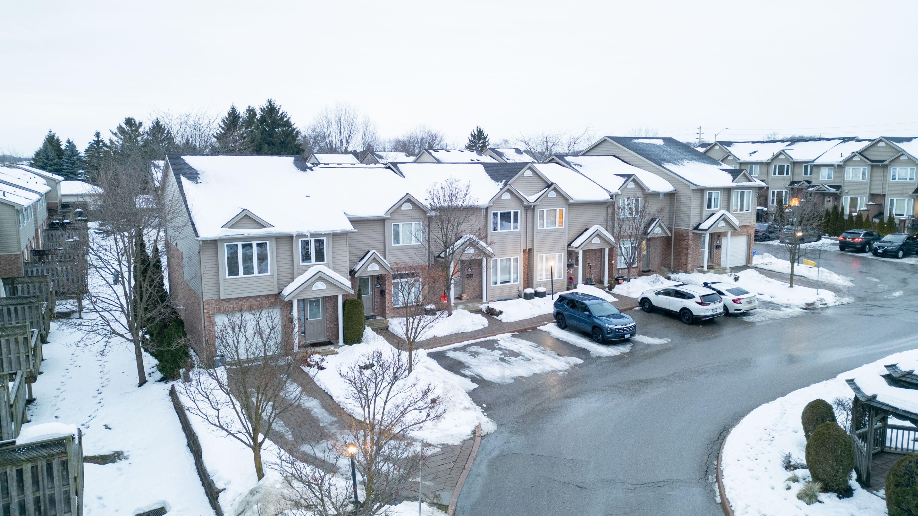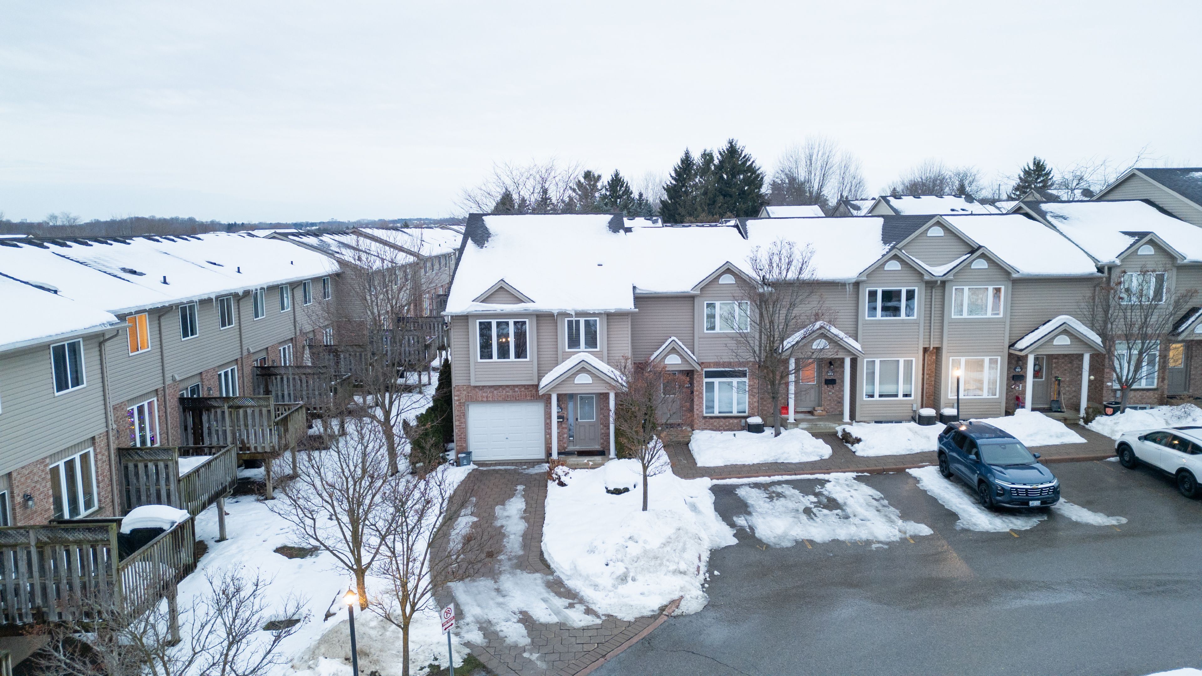 Welcome to your dream multi-level 4-bed, 2.5-bath condo townhome in the highly desirable Stoney Creek / North C neighbourhood of London! Exceptionally maintained with neutral décor and move-in condition, this unique layout offers true townhouse living with the convenience of condo ownership. Featuring attached garage plus double tandem driveway with space for up to 3 vehicles, this home combines practicality with style. Enjoy the bright open-concept kitchen with abundant cabinetry, centre island with elevated counter, built-in desk space, and double sink - ideal for everyday living and entertaining. The adjacent dining area opens through updated patio doors to a deck balcony overlooking the neighbourhood. The living room's oak hardwood flooring and California shutters add warmth and character to the main level. Upstairs, the generously sized primary suite boasts wall-to-wall closets and a large ensuite. Additional upper level bedrooms offer plenty of space with a full bathroom on the third floor. The lower level family room provides a cozy retreat for movie nights or a kids' play area, with a sizeable storage room below for seasonal gear or extras. Located in north London's sought-after area, this home offers excellent access to everyday amenities. Just minutes to CF Masonville Place, parks, transit, and recreational facilities including the Stoney Creek YMCA and Library. The neighbourhood is family-friendly with excellent access to schools, while groceries and essentials are nearby. Easy access to shopping, dining and major roadways makes this an ideal choice for families, professionals, or investors alike. Low condo fees and thoughtful design make this ready to call home!