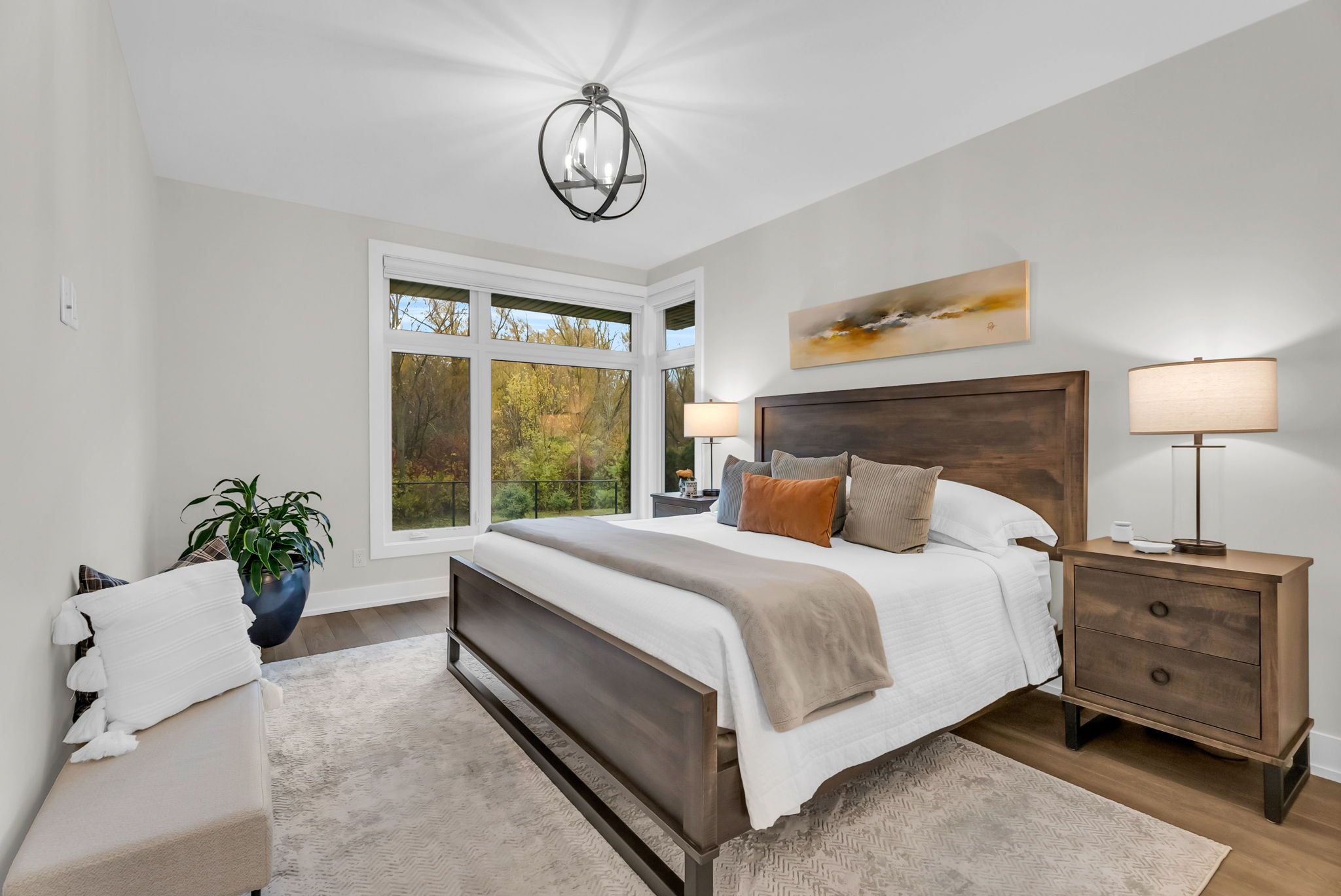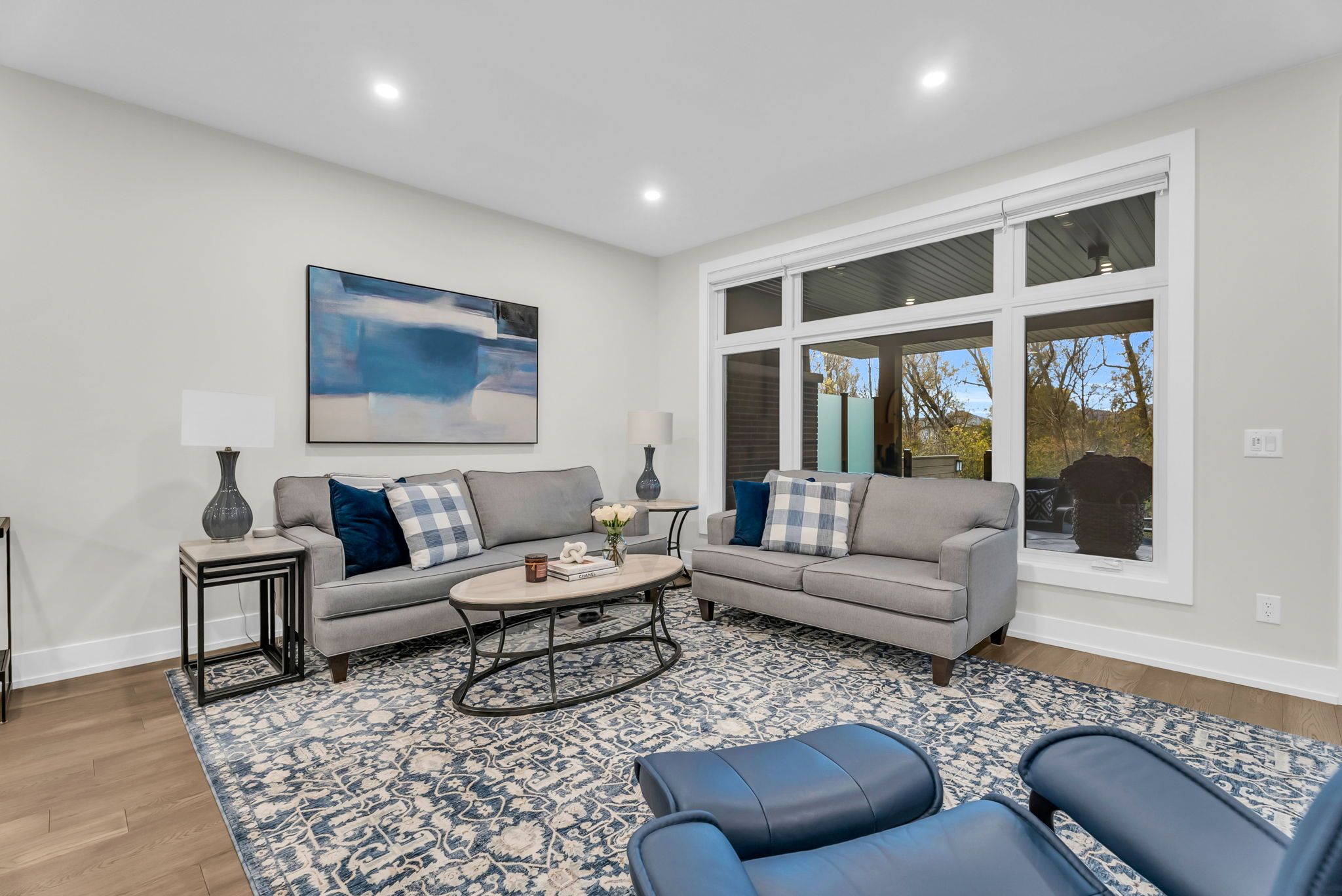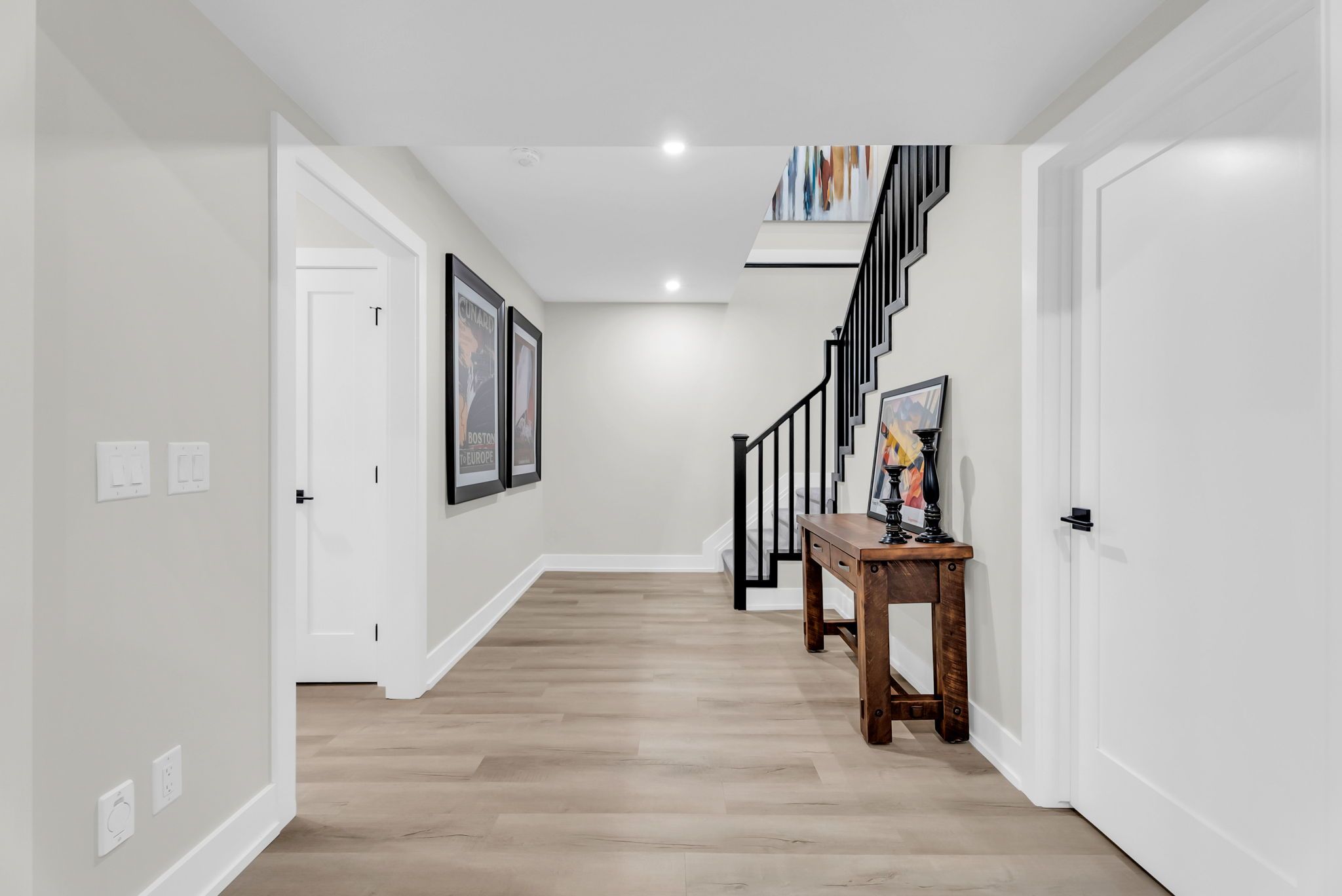 Welcome to this award-winning, Rinaldi-built luxury end-unit bungalow townhome, nestled in an exclusive community surrounded by protected green space. Only 4 years old, this home shows like new and features over $100,000 in premium upgrades. The main floor boasts 9' ceilings and includes 2 bedrooms, a fully upgraded kitchen with a stunning 10' island, and a spacious family room highlighted by a custom linear fireplace. The primary bedroom offers a walk-in closet and a luxurious ensuite with designer finishes. The finished basement impresses with 8' ceilings, an expansive recreation room, a full bathroom, and a large bedroom, providing ample space for guests or family. Additional upgrades include motorized window coverings, extensive pot lighting, and upgraded cabinetry and countertops throughout. Step outside to enjoy the morning sunrise from the 16' x 20' Trex deck or the lower patio, both overlooking a premium lot backing onto protected woodland-the perfect setting for peace and privacy. Experience ultimate 'lock and leave' lifestyle in this elegant bungalow townhome that is located minutes to all amenities. Forget exterior chores-the low maintenance fee covers your sprinkler system, grass cutting, snow removal. Enjoy sophisticated modern living with four key amenity rough-ins already complete: a central vacuum system, gas Stove, an elegant wet bar for effortless entertaining, and an electric vehicle (EV) charger in the garage. These spaces are professionally prepared for immediate installation and personalization.