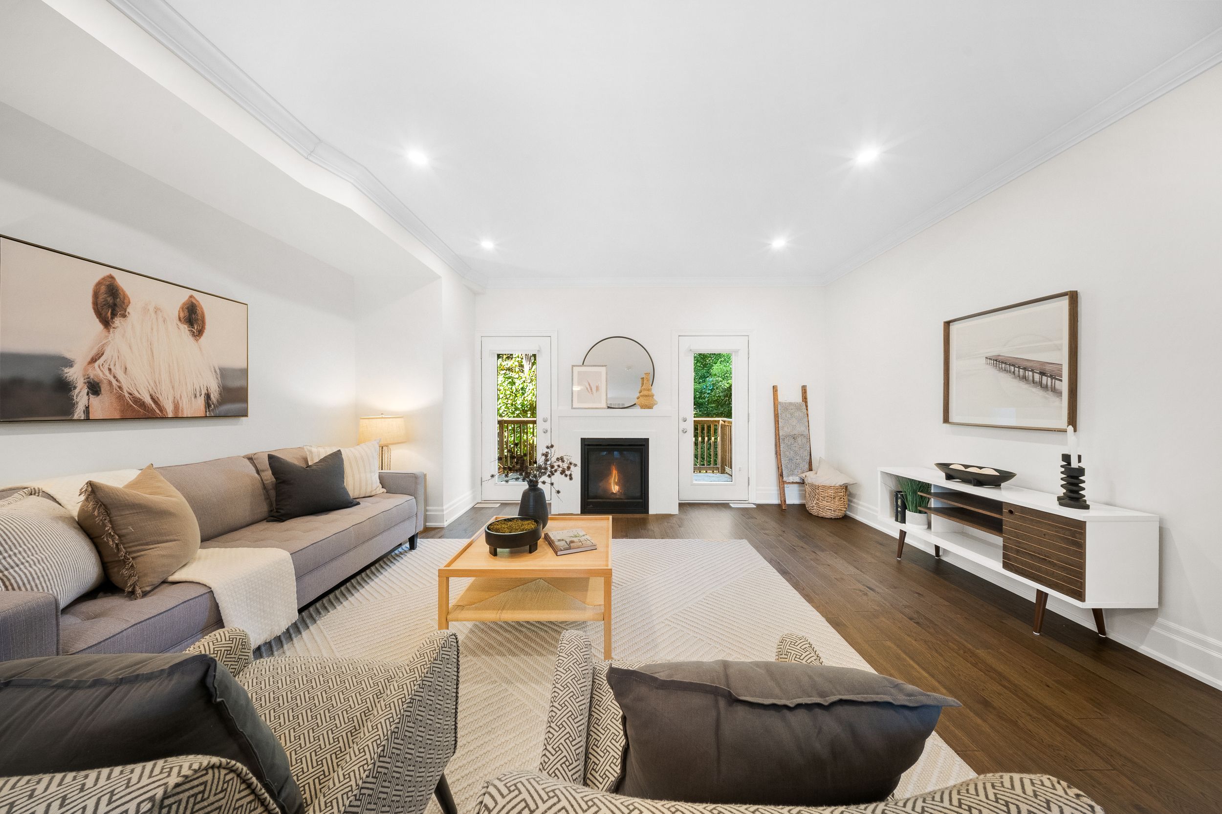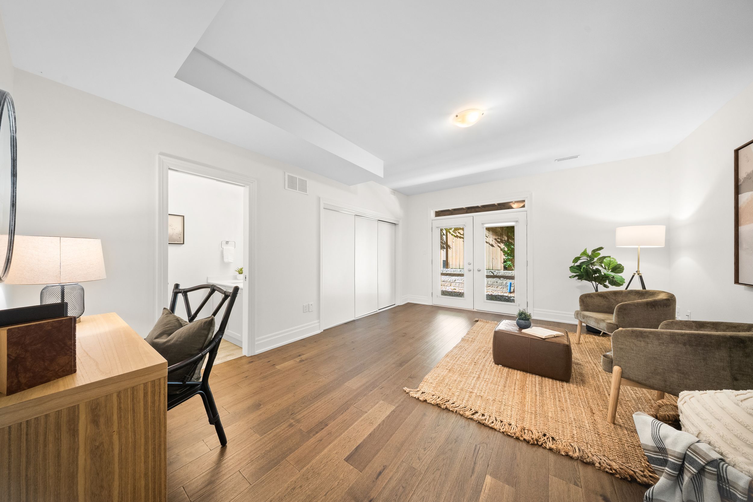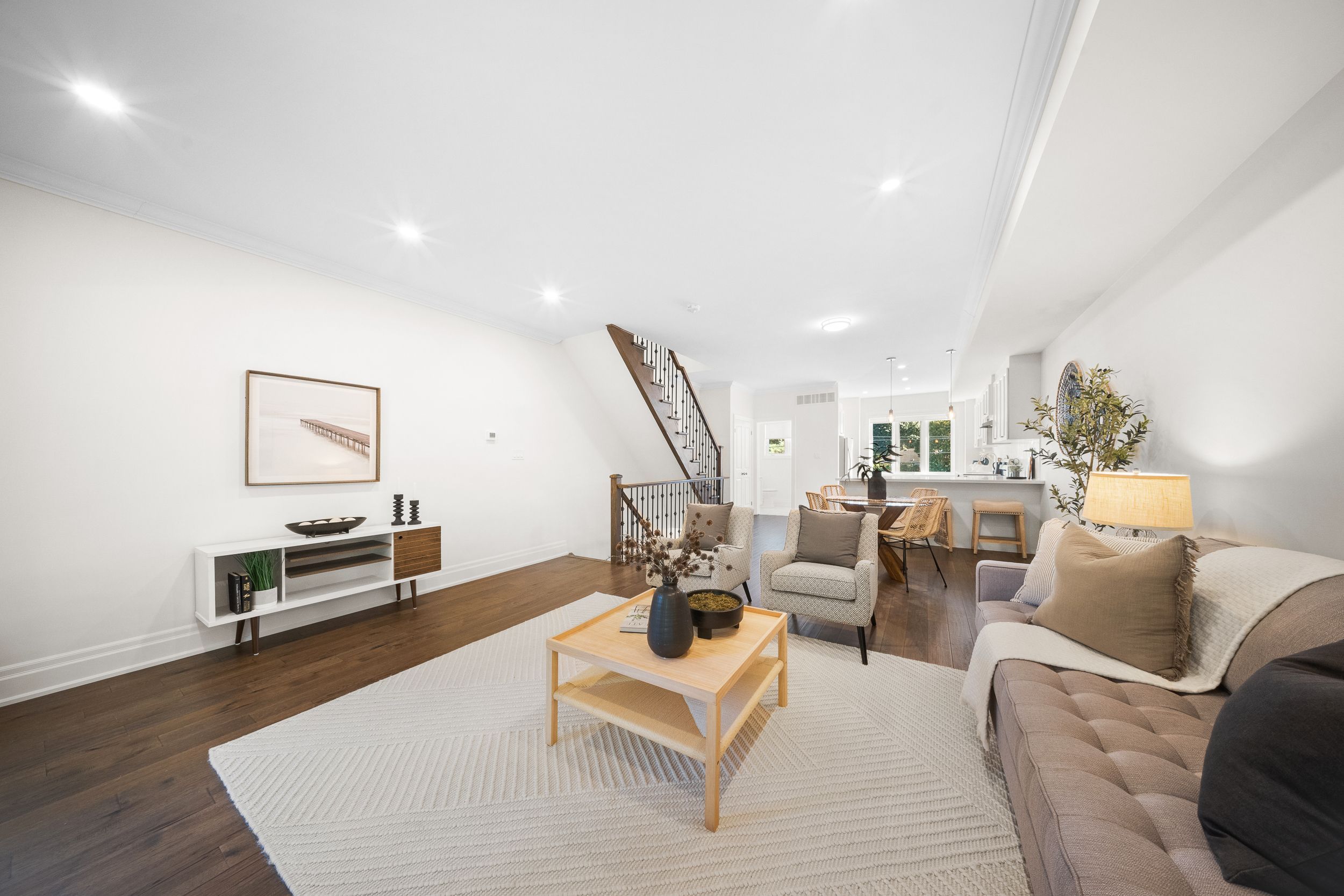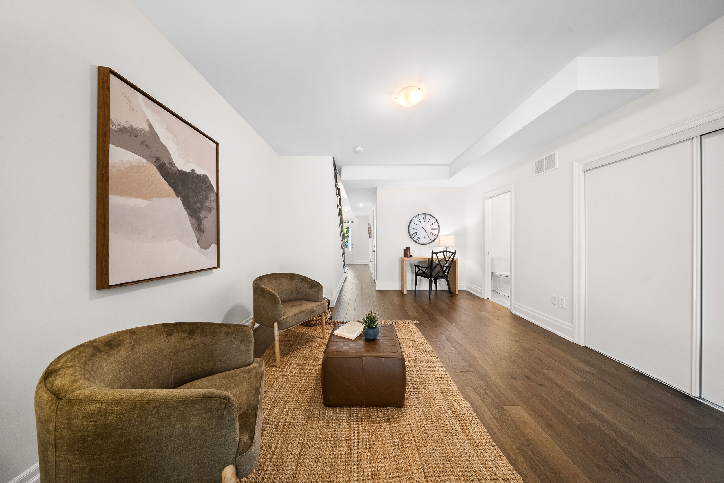 Welcome to this stunning and spacious 3-bedroom, 4-bathroom executive townhome, ideally situated in the heart of desirable Ancaster Village. Nestled in an exclusive 10-unit complex backing onto a private ravine, this meticulously maintained residence offers 2,000+ sq. ft. of beautifully designed living space with exceptional upgrades throughout. Step inside from the charming covered porch into a versatile flex space with direct access to the garage and a walkout to an exposed aggregate patio. A convenient 2-piece bath with quartz vanity completes this level extending your living space -ideal for a home office, recreation room, guest suite or even a 4th bedroom. The main level is designed for modern living and entertaining, featuring soaring 9-ft ceilings, crown moulding, hardwood floors, and pot lighting. A striking gas fireplace anchors the open-concept living room, with double doors leading to a deck overlooking the ravine- perfect for barbecuing. The bright dining area and crisp white kitchen boast quartz counters, a breakfast peninsula, gorgeous hexagon backsplash, stainless steel appliances, and ample cabinetry. Upstairs, the primary bedroom offers a walk-in closet and upgraded ensuite with a glass walk-in shower and ravine views. Two additional bedrooms, a full 4-piece bath with quartz vanity, and convenient upper-level laundry provide comfort and functionality. Located just steps from amenities-coffee shops, dining, bakeries, trails, schools, and boutique shopping-this move-in ready home combines luxury, convenience, and a serene natural setting. A rare opportunity to own a premium Ancaster townhome!