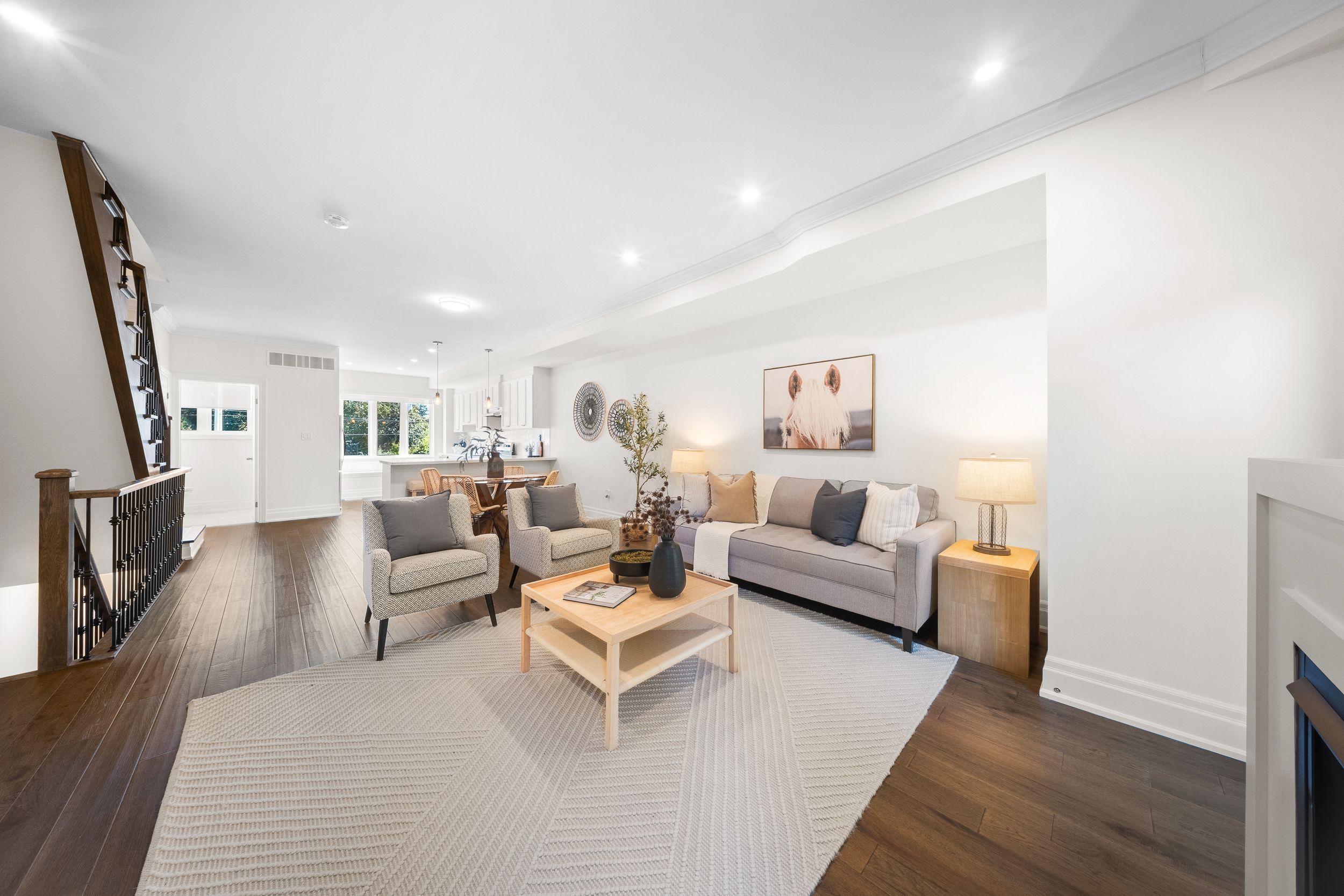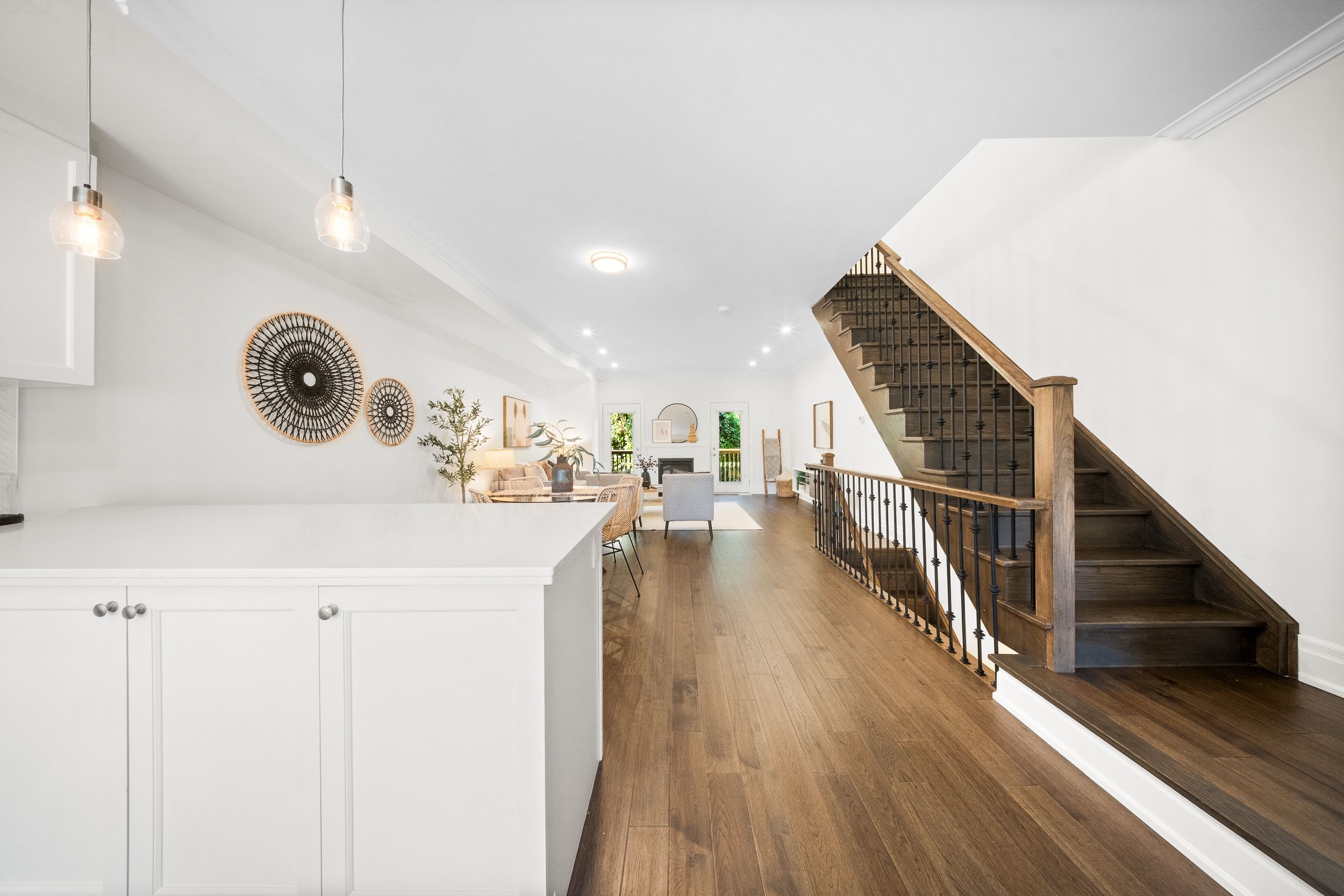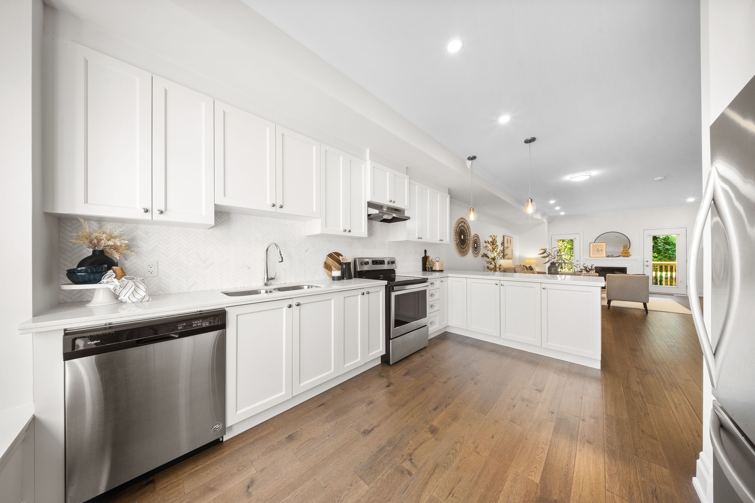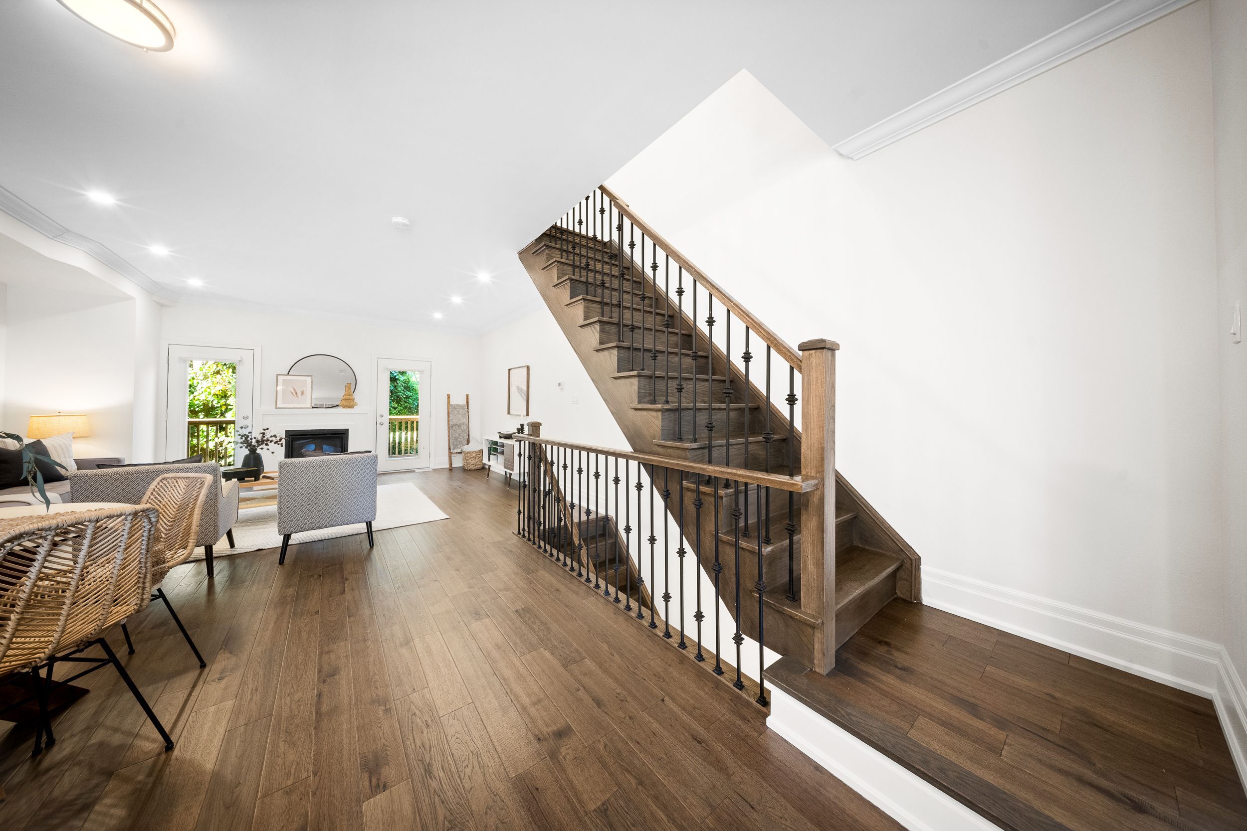 Welcome to this stunning and spacious 3-bedroom, 4-bathroom executive townhome, ideally situated in the heart of desirable Ancaster Village. Nestled in an exclusive 10-unit complex backing onto a private ravine, this meticulously maintained residence offers 2,000+ sq. ft. of beautifully designed living space with exceptional upgrades throughout. Step inside from the charming covered porch into a versatile flex space with direct access to the garage and a walkout to an exposed aggregate patio. A convenient 2-piece bath with quartz vanity completes this level extending your living space -ideal for a home office, recreation room, guest suite or even a 4th bedroom. The main level is designed for modern living and entertaining, featuring soaring 9-ft ceilings, crown moulding, hardwood floors, and pot lighting. A striking gas fireplace anchors the open-concept living room, with double doors leading to a deck overlooking the ravine- perfect for barbecuing. The bright dining area and crisp white kitchen boast quartz counters, a breakfast peninsula, gorgeous hexagon backsplash, stainless steel appliances, and ample cabinetry. Upstairs, the primary bedroom offers a walk-in closet and upgraded ensuite with a glass walk-in shower and ravine views. Two additional bedrooms, a full 4-piece bath with quartz vanity, and convenient upper-level laundry provide comfort and functionality. Located just steps from amenities-coffee shops, dining, bakeries, trails, schools, and boutique shopping-this move-in ready home combines luxury, convenience, and a serene natural setting. A rare opportunity to own a premium Ancaster townhome!