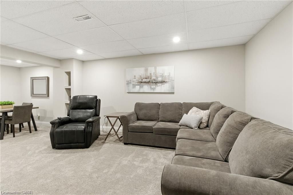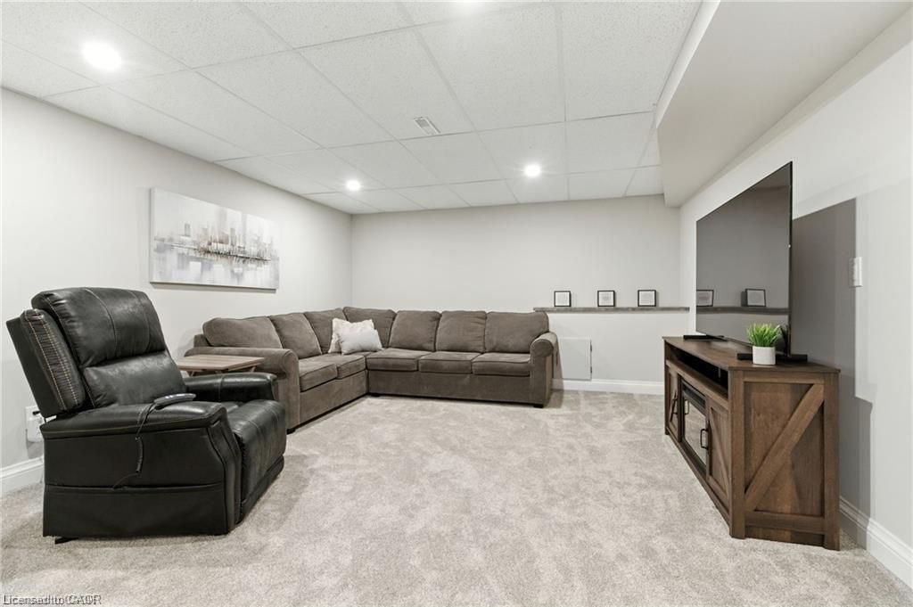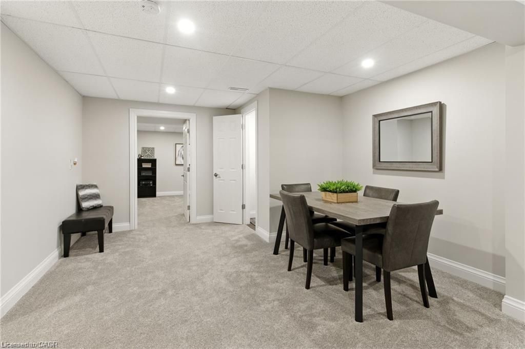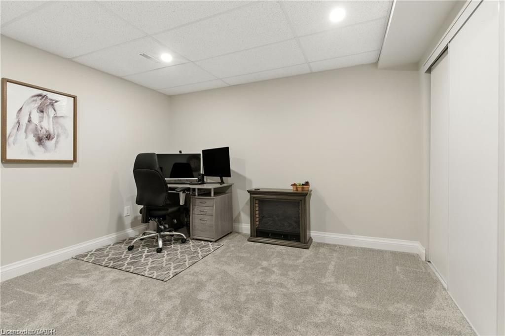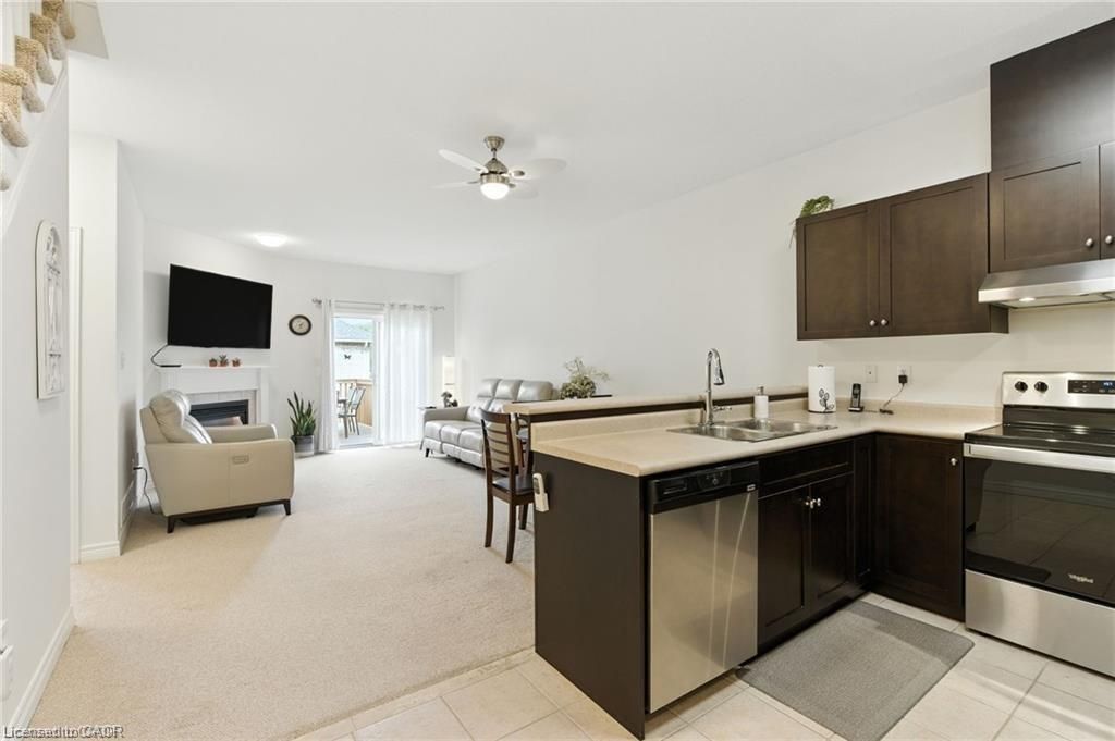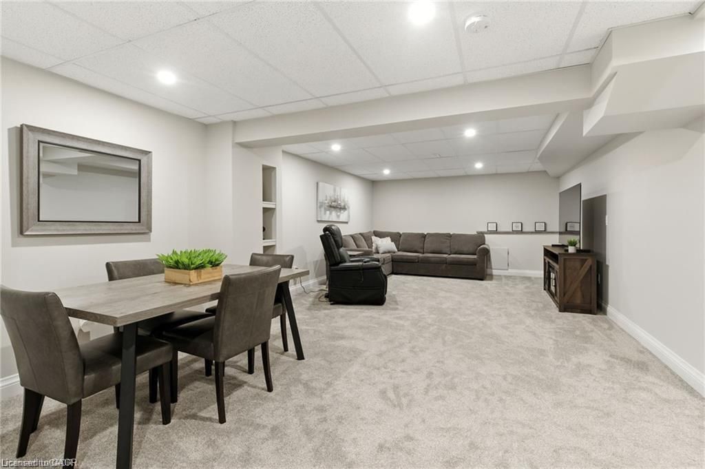 Unique 2-storey townhome with complete main floor living in desirable Binbrook. This spacious 4-bedroom, 4-bath home includes 2 office spaces and is located in a safe, family-friendly complex. Unit #20 backs onto greenspace with a walking trail. The main floor offers an open-concept kitchen, dining and living area with gas fireplace and 9 ft ceilings, a primary bedroom with 3pc ensuite, office, and laundry. Upstairs features 2 large bedrooms and a full bath overlooking the yard. The lower level, finished in 2023, includes a family room, play area, bedroom, 2pc bath with space to add a shower, office, and utility/storage room. Upgrades and thoughtful finishes throughout.