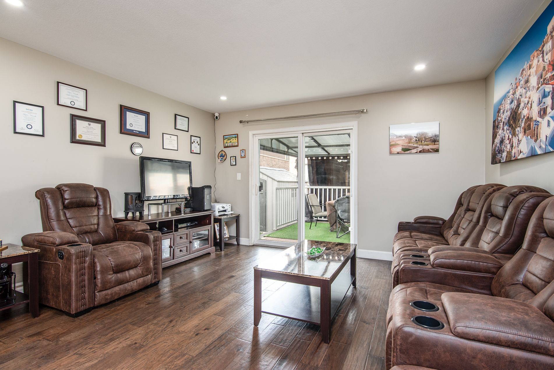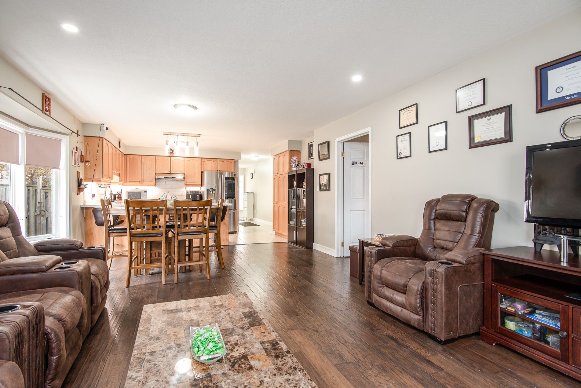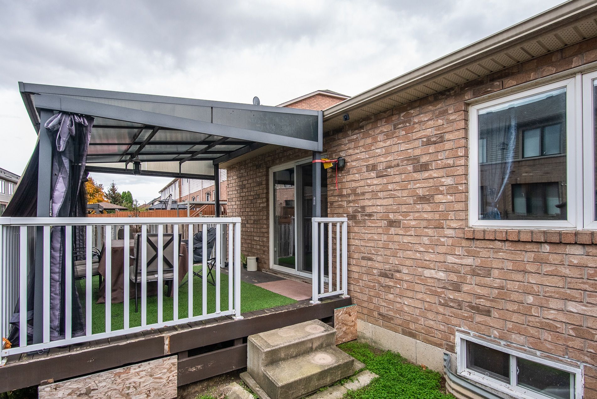 Beautiful Freehold End-Unit Bungalow on Premium Lot. Welcome to this immaculately maintained one-storey home, perfectly situated on a large, fully fenced premium lot with a spacious deck, garden shed. This all-brick bungalow offers a blend of comfort, style, and thoughtful upgrades throughout. The open-concept main living area features extended tile flooring from the foyer to the kitchen, hardwood floors, and abundant pot lights. The bright family room opens to the stunning backyard, perfect for entertaining or relaxing. The modern kitchen offers granite countertops, undermount sink, backsplash, pendant lighting, and a valance with lights, plus a convenient breakfast bar. The primary bedroom includes a custom ensuite with walk-in shower and granite vanity, while the main bath also features granite finishes. The second bedroom is bright and spacious. Main floor laundry includes a utility sink and direct access to the garage. The fully finished basement offers exceptional additional living space, including two large bedrooms and a full bathroom-perfect for guests, teens, or extended family. Recent Updates: Roof shingles (2020) Walkway and deck gazebo (2020) Furnace, A/C, and tankless water heater (2020) New pot lights in living room and basement (2025) Sump pump replaced (2024) Fridge, stove, dishwasher, range hood, washer and dryer updated in past few years. This home is move-in ready, with pride of ownership evident throughout. A rare opportunity to own a beautifully updated bungalow in a desirable, family-friendly neighbourhood.