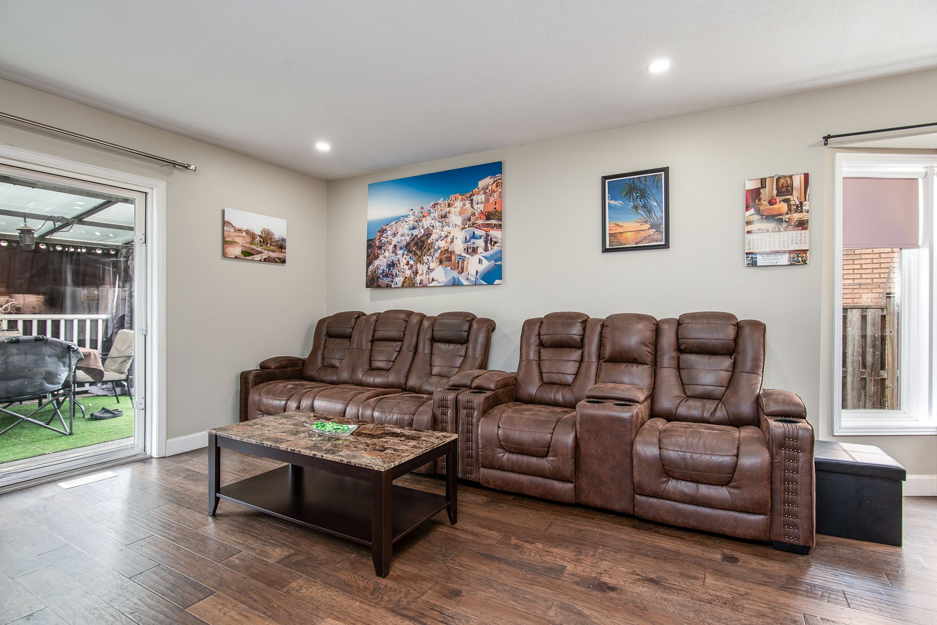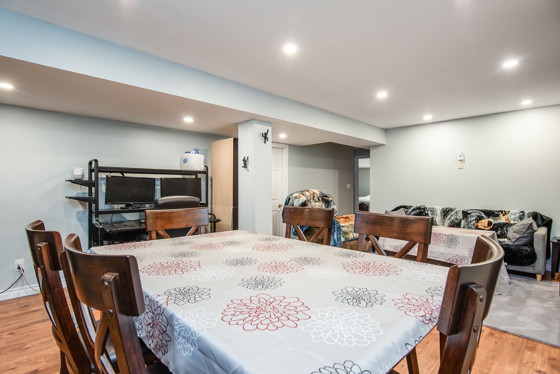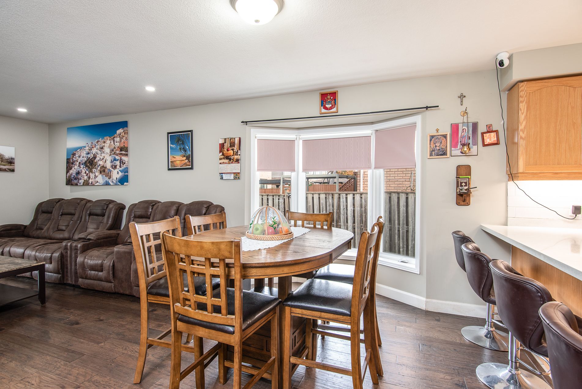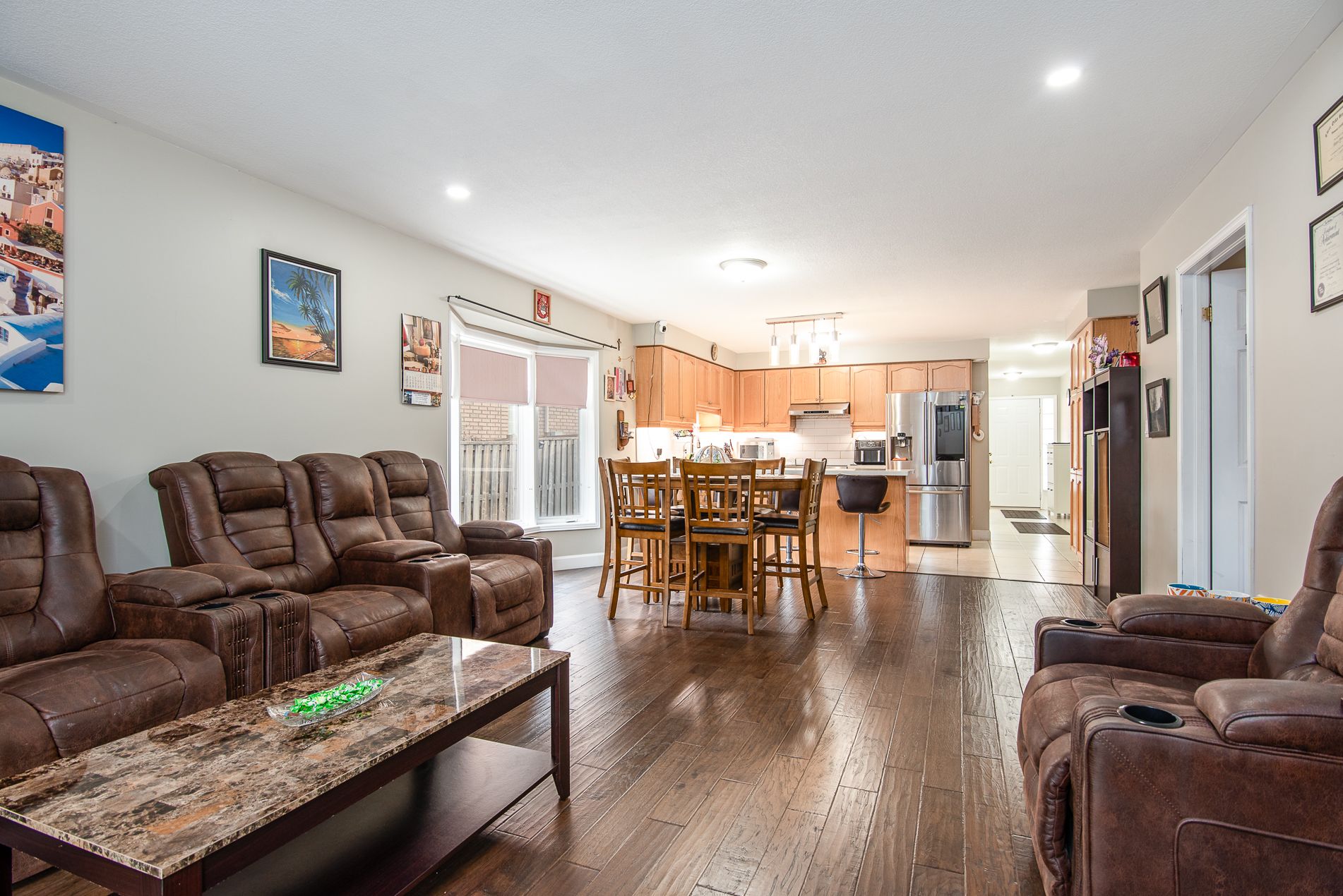 Beautiful Freehold End-Unit Bungalow on Premium Lot. Welcome to this immaculately maintained one-storey home, perfectly situated on a large, fully fenced premium lot with a spacious deck, garden shed. This all-brick bungalow offers a blend of comfort, style, and thoughtful upgrades throughout. The open-concept main living area features extended tile flooring from the foyer to the kitchen, hardwood floors, and abundant pot lights. The bright family room opens to the stunning backyard, perfect for entertaining or relaxing. The modern kitchen offers granite countertops, undermount sink, backsplash, pendant lighting, and a valance with lights, plus a convenient breakfast bar. The primary bedroom includes a custom ensuite with walk-in shower and granite vanity, while the main bath also features granite finishes. The second bedroom is bright and spacious. Main floor laundry includes a utility sink and direct access to the garage. The fully finished basement offers exceptional additional living space, including two large bedrooms and a full bathroom-perfect for guests, teens, or extended family. Recent Updates: Roof shingles (2020) Walkway and deck gazebo (2020) Furnace, A/C, and tankless water heater (2020) New pot lights in living room and basement (2025) Sump pump replaced (2024) Fridge, stove, dishwasher, range hood, washer and dryer updated in past few years. This home is move-in ready, with pride of ownership evident throughout. A rare opportunity to own a beautifully updated bungalow in a desirable, family-friendly neighbourhood.