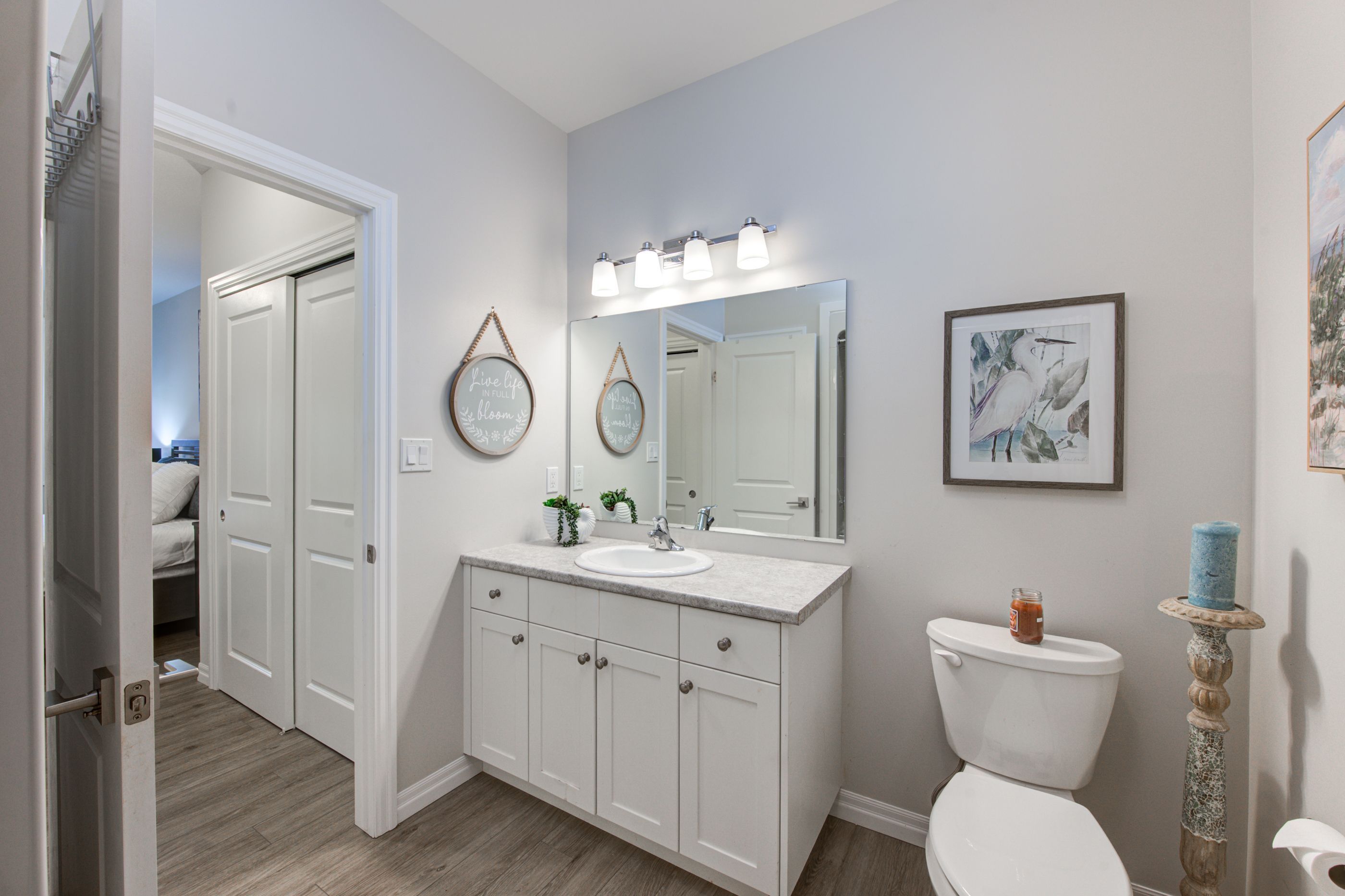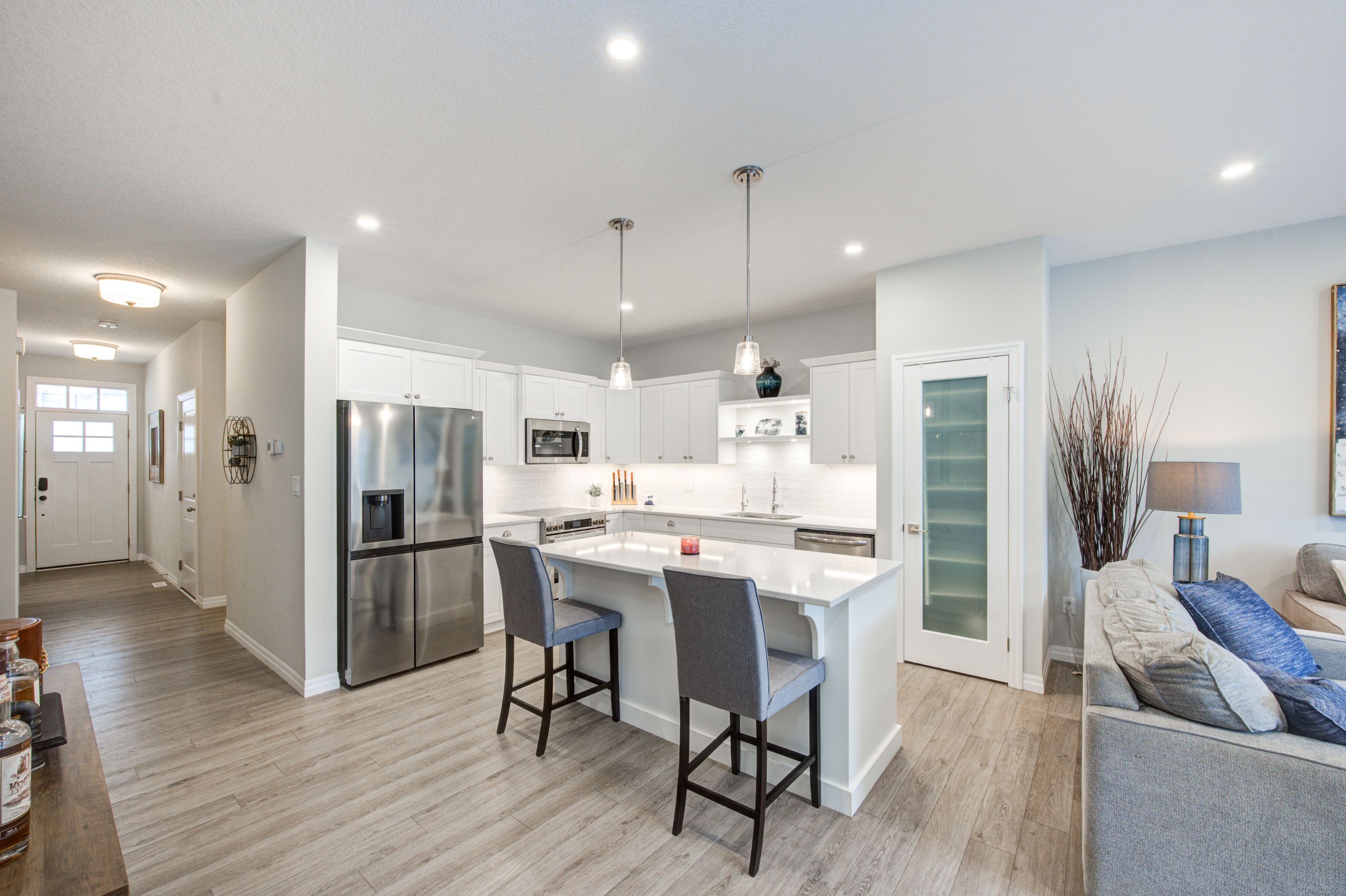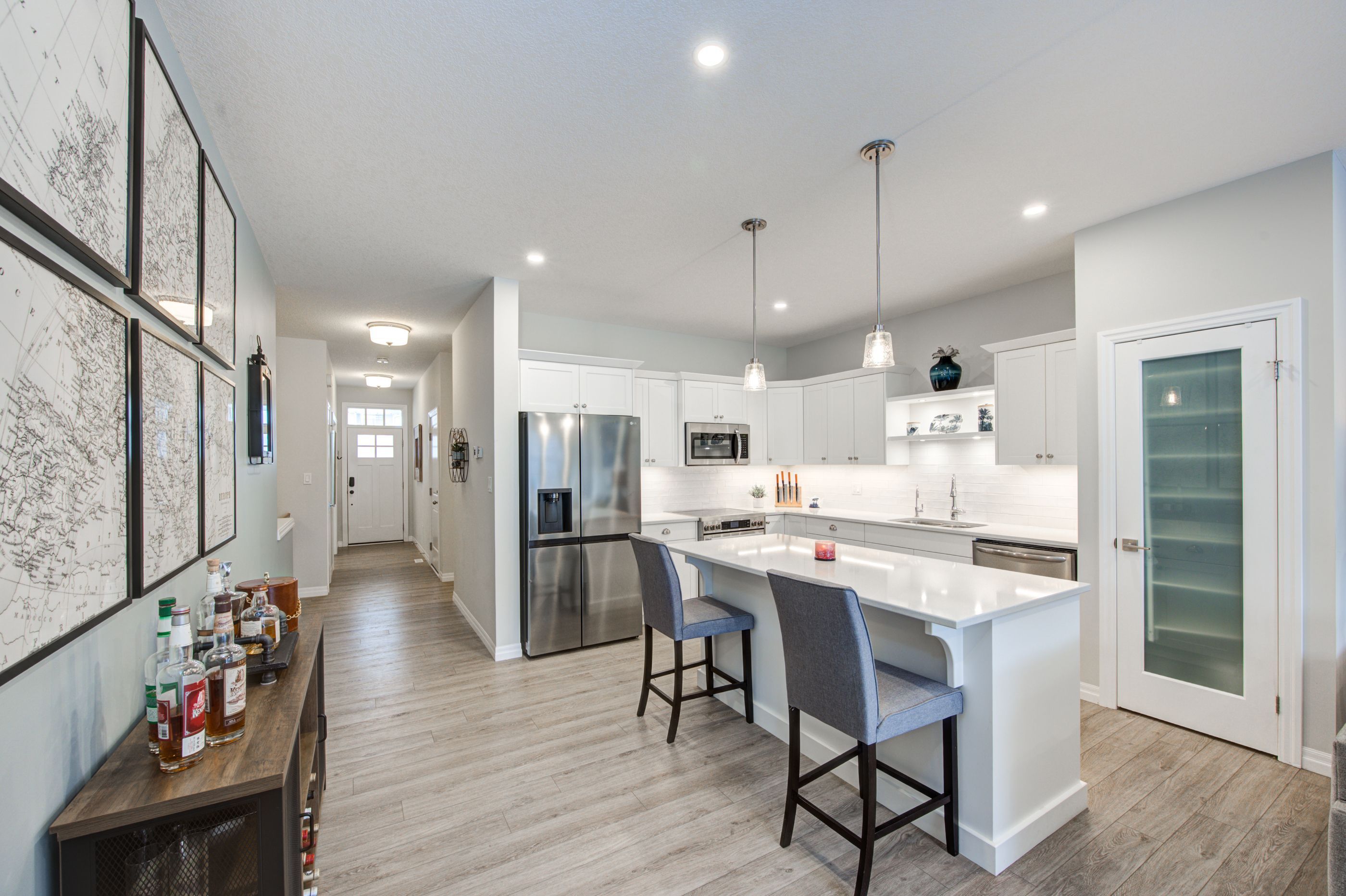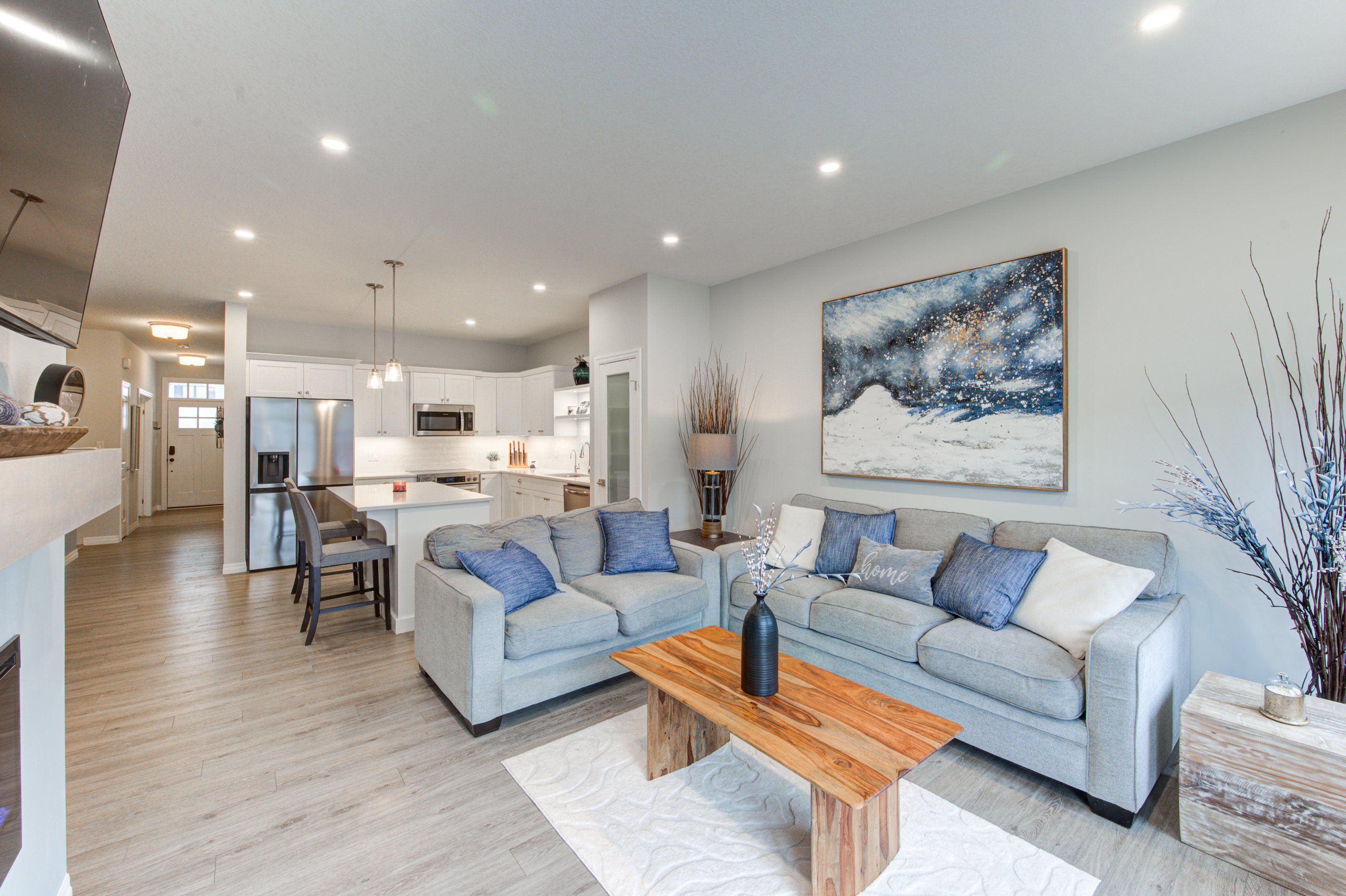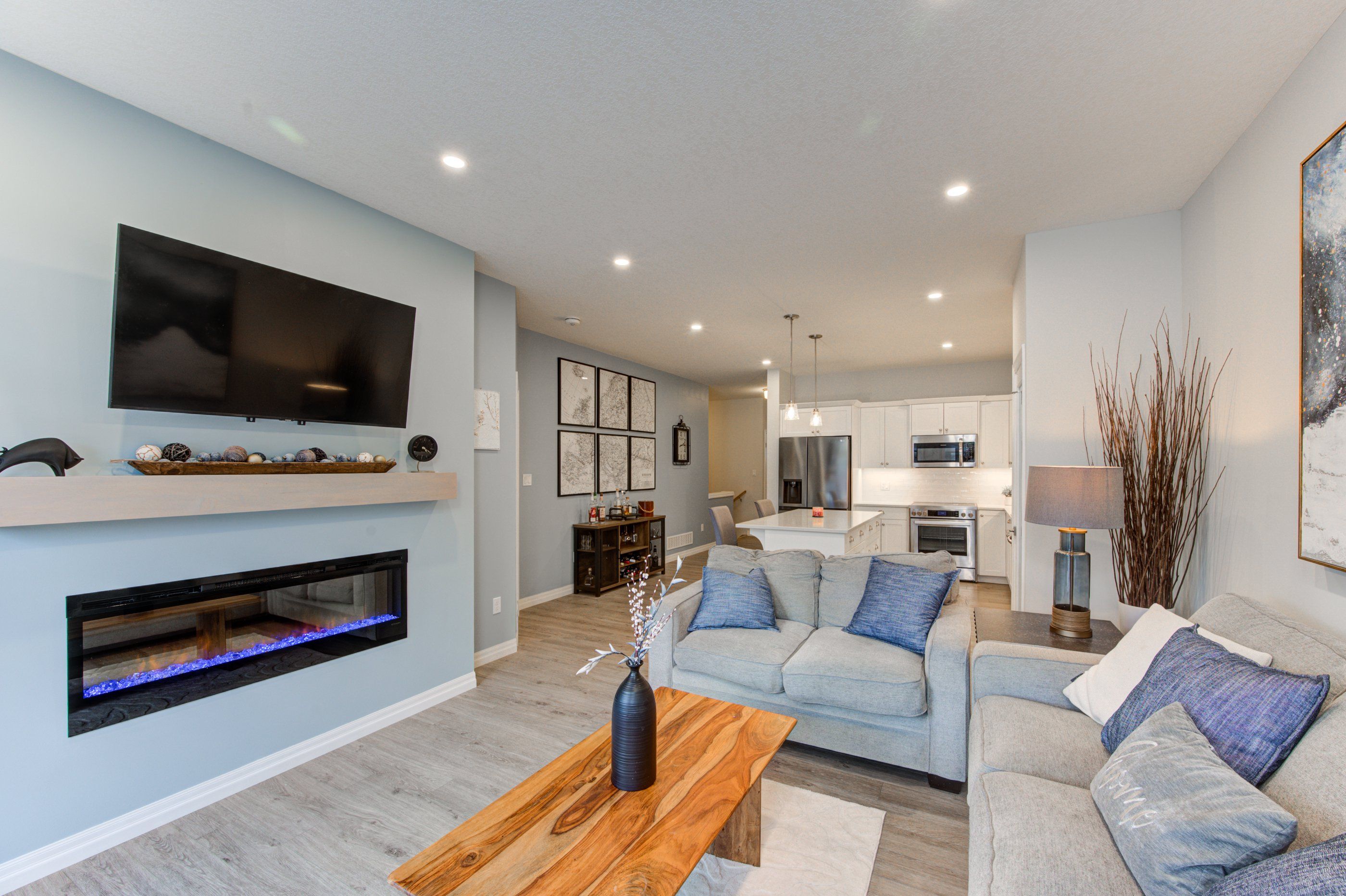 Built by award-winning Hayhoe Homes, this meticulously maintained freehold bungalow townhome offers stylish, low-maintenance living with no condo fees. The open-concept main floor features laminate flooring, quartz countertops, a large kitchen island with seating, tile backsplash, pantry, main-floor laundry, and a bright living area with an electric fireplace featuring adjustable LED flame colors. Patio doors lead to a fully fenced back deck, ideal for outdoor entertaining. The main level includes two bedrooms and two bathrooms, including a spacious primary suite with a four-piece ensuite, large double closets, and blackout blinds. The front room offers flexibility as a bedroom, home office, or den. Window blinds are installed throughout the upper level. The fully finished lower level offers a generous recreation room, third bedroom, four-piece bathroom, and ample storage-perfect for guests or extended family. Enjoy a fully fenced, dog-proof backyard with landscaped perennial gardens, stone accents, a custom gate off the deck, gas BBQ hookup, and a professionally installed storage shed. The attached garage measures19'1" x 10'10". Parking for three vehicles is provided with one garage space and two driveway spaces, freshly coated and sealed. Additional features include quality appliances, water softener, kitchen water filtration, Lifebreath air exchanger, and optional chest freezer. Located in a desirable neighborhood close to schools, parks, shopping, restaurants, and Highway 401 access, with an easy drive to London, Woodstock, and Lake Erie beaches. A beautifully maintained, move-in-ready home offering exceptional value and convenience-with no condo fees.