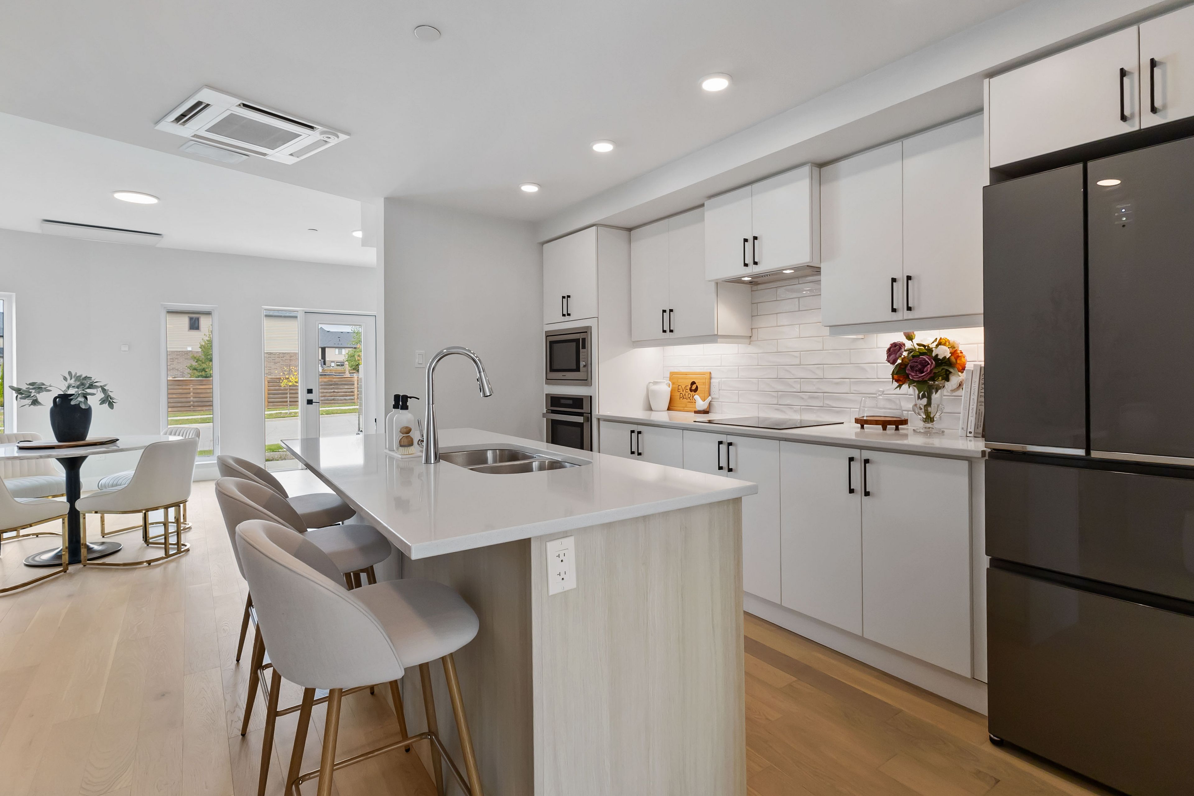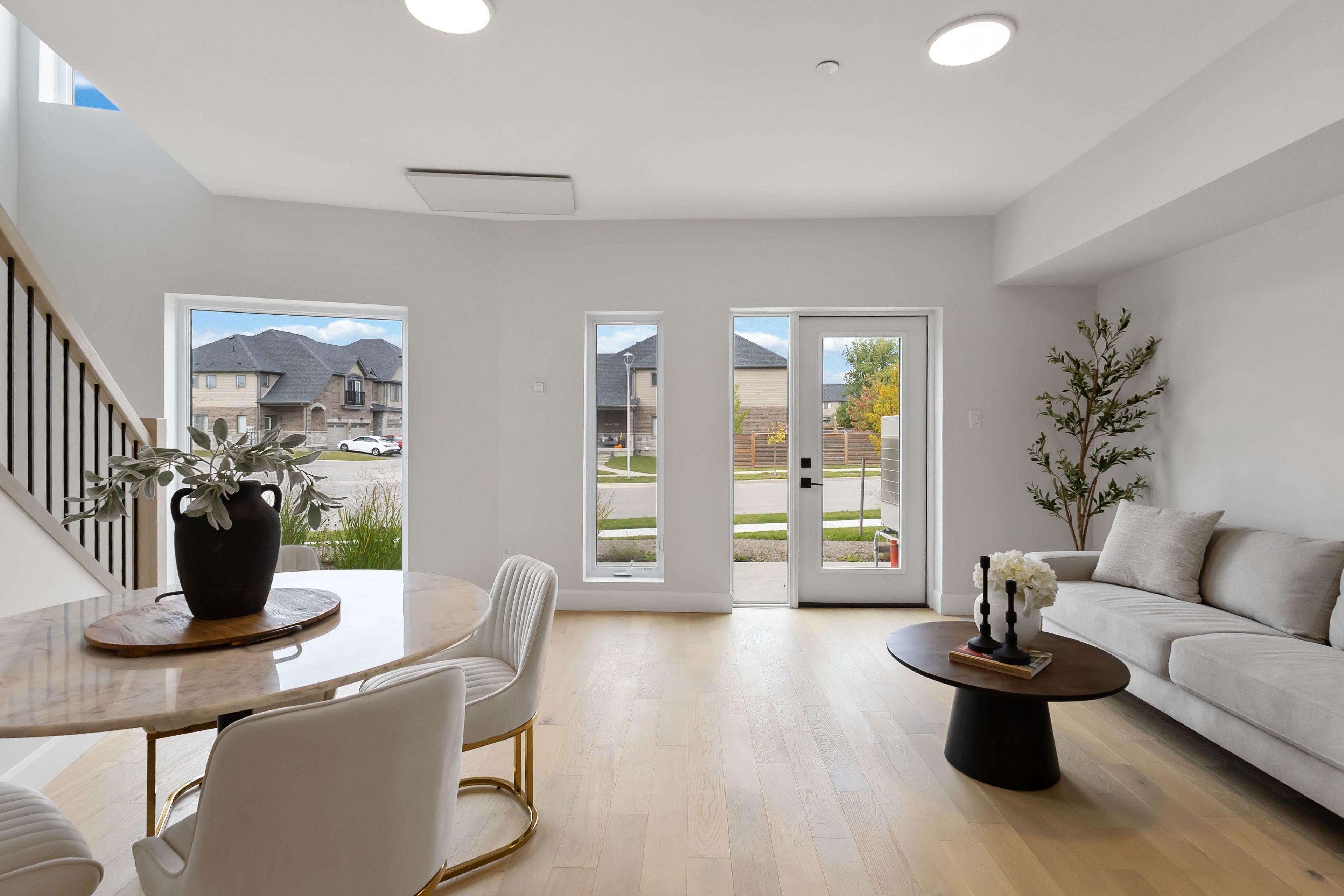 Only 3 Sumac units left. Get into one of our last move-in ready homes today! Live life comfortably in one of London's most sought-out communities. Unit B117 at EVE Park isa modern 2-bedroom, 2.5 bath townhouse-style home that offers 1,312 interior square feet of thoughtfully designed living space across two levels. The open-concept main floor features a bright kitchen, and dining and living area finished with clean contemporary details, that looks out into your private garden space for you to further enjoy the outside from the comfort of your home. The second floor opens to a primary bedroom with a walk-in closet and en-suite bathroom with a double sink vanity. A second bedroom, additional full bathroom, and en-suite laundry complete the layout. EVE Park is an award-winning, net-zero community fully powered by solar energy generated on-site. Located in the budding Riverbend neighbourhood of West 5, it is in close proximity to amenities such as retail shops, health services, schools, and parks, making EVE Park an ideal home for families and professionals alike.