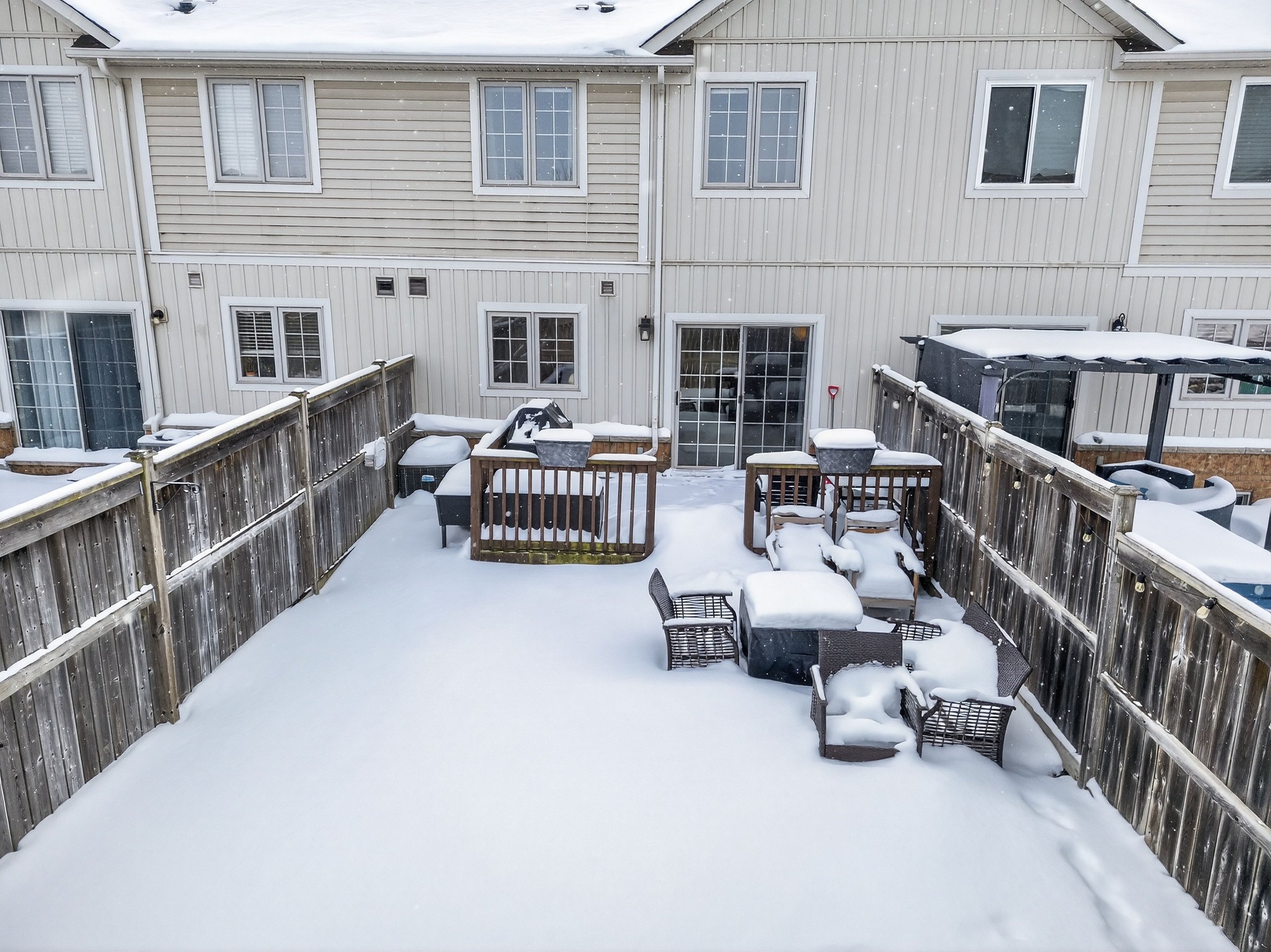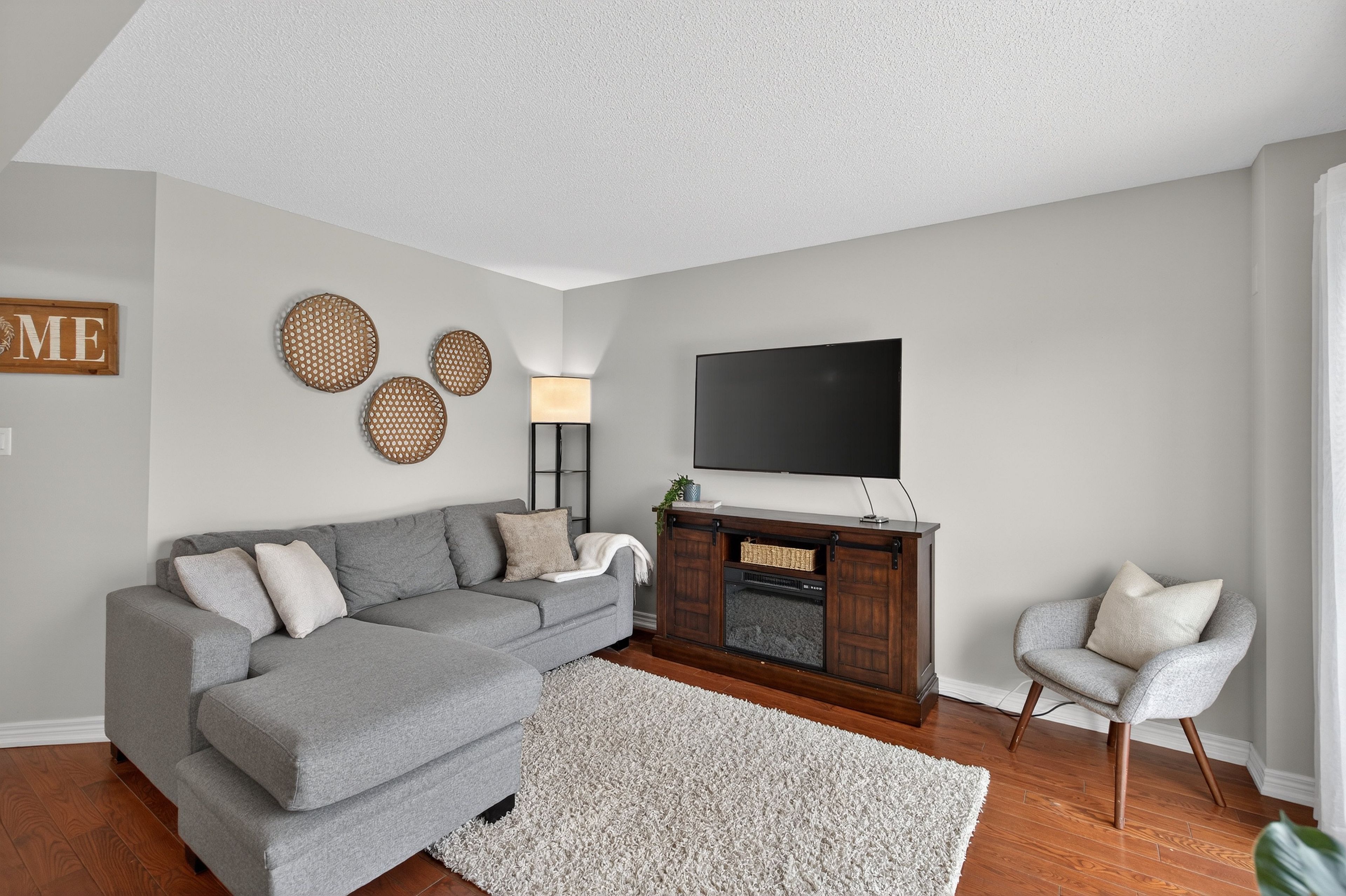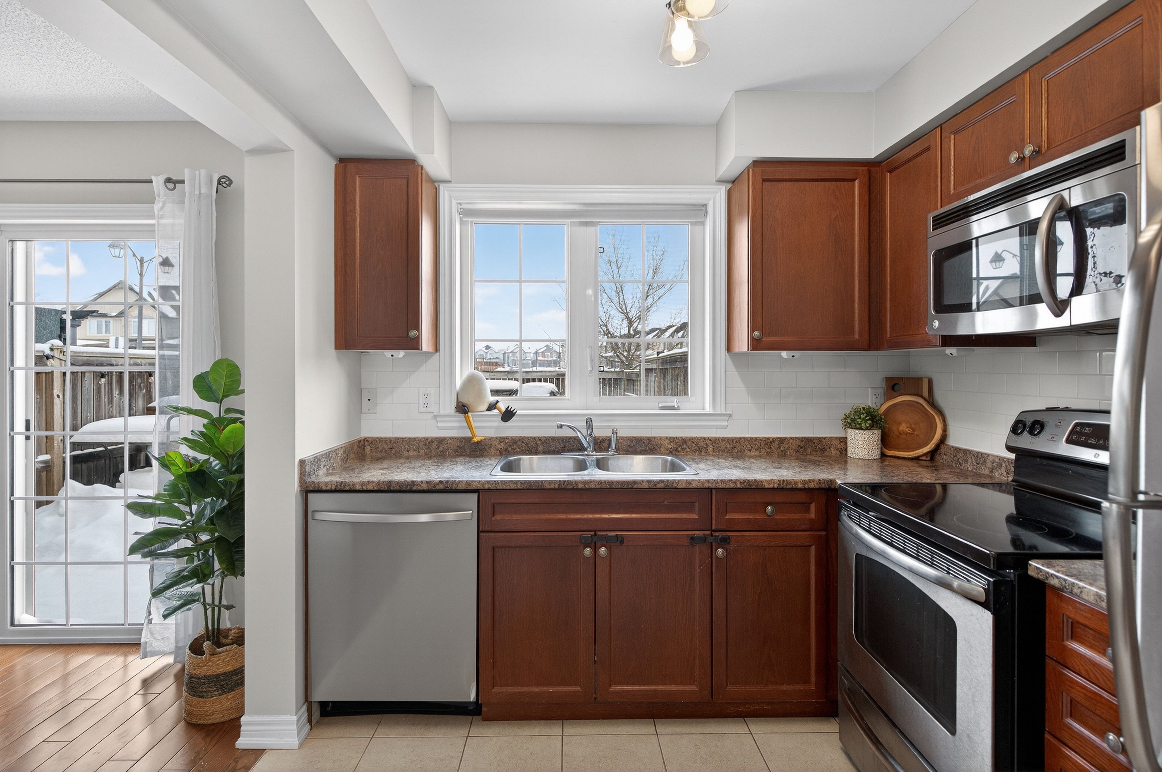 Welcome HOME to 222 Fall Fair Way #64 - an affordable freehold townhome nestled in Binbrook's desirable Country Estates community. Ideal for first-time buyers, downsizers, or investors, this stylish home combines comfort, convenience, and low-maintenance living. Offering driveway parking for one vehicle plus an additional spot in the attached garage with convenient inside entry, there's also plenty of visitors parking for your guests. The bright, open-concept main level features a modern eat-in kitchen with stainless steel appliances and a newer dishwasher, flowing into a cozy living area. Patio doors lead to a private yard (no rear neighbours!), complete with a wood deck, green space, and patio - perfect for entertaining and summer BBQs. Upstairs offers two spacious bedrooms, including an oversized primary with a walk-in closet, a 4- piece main bathroom with trendy bead-board accent, and stackable laundry with handy storage. The partially finished basement adds a rec room, 3-piece bathroom, and additional storage space. Walking distance to schools, parks, trails, shops, and amenities, with easy access to Hamilton and major routes, this home delivers comfort, space, and low-maintenance living in an established community.
