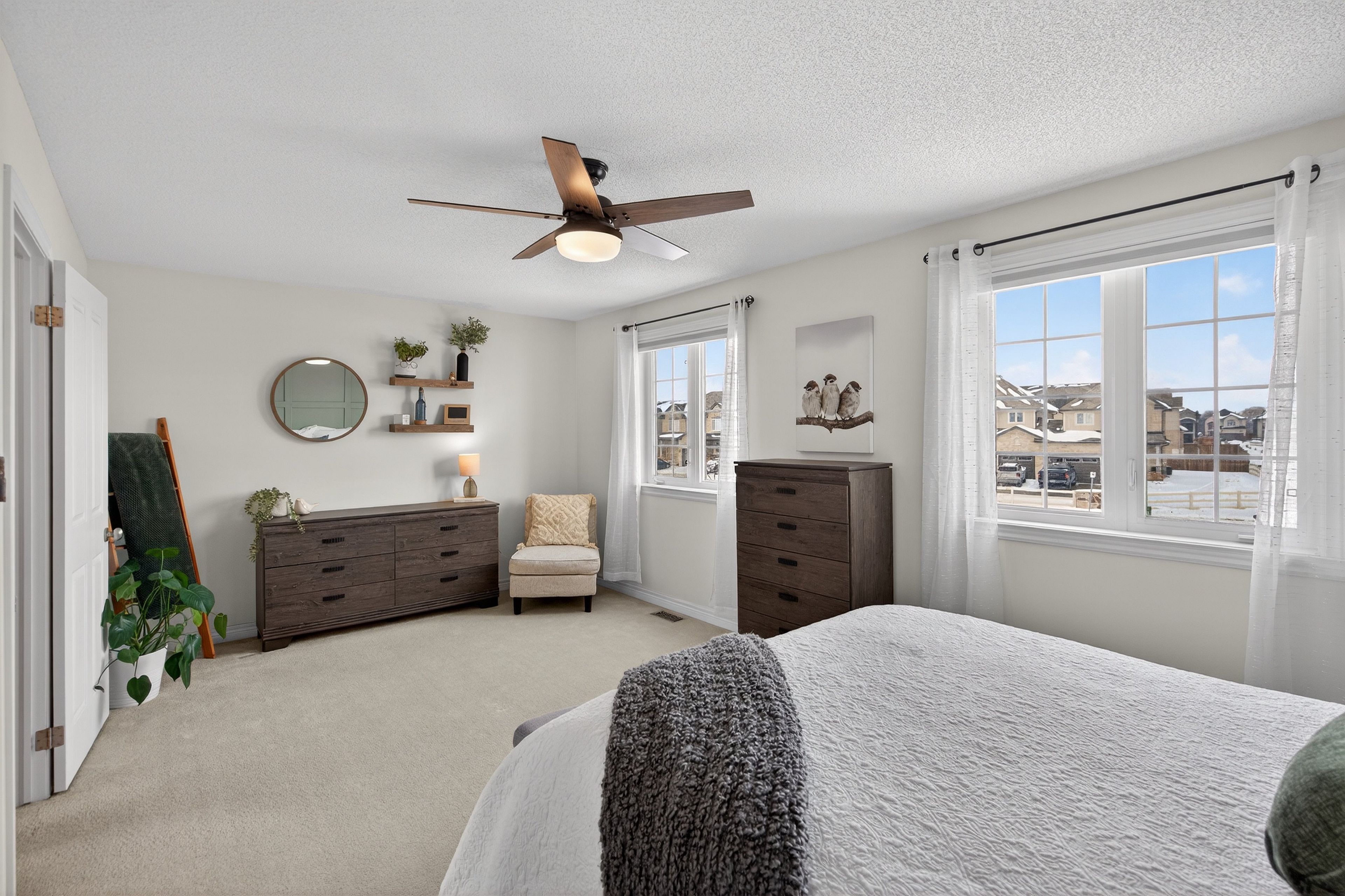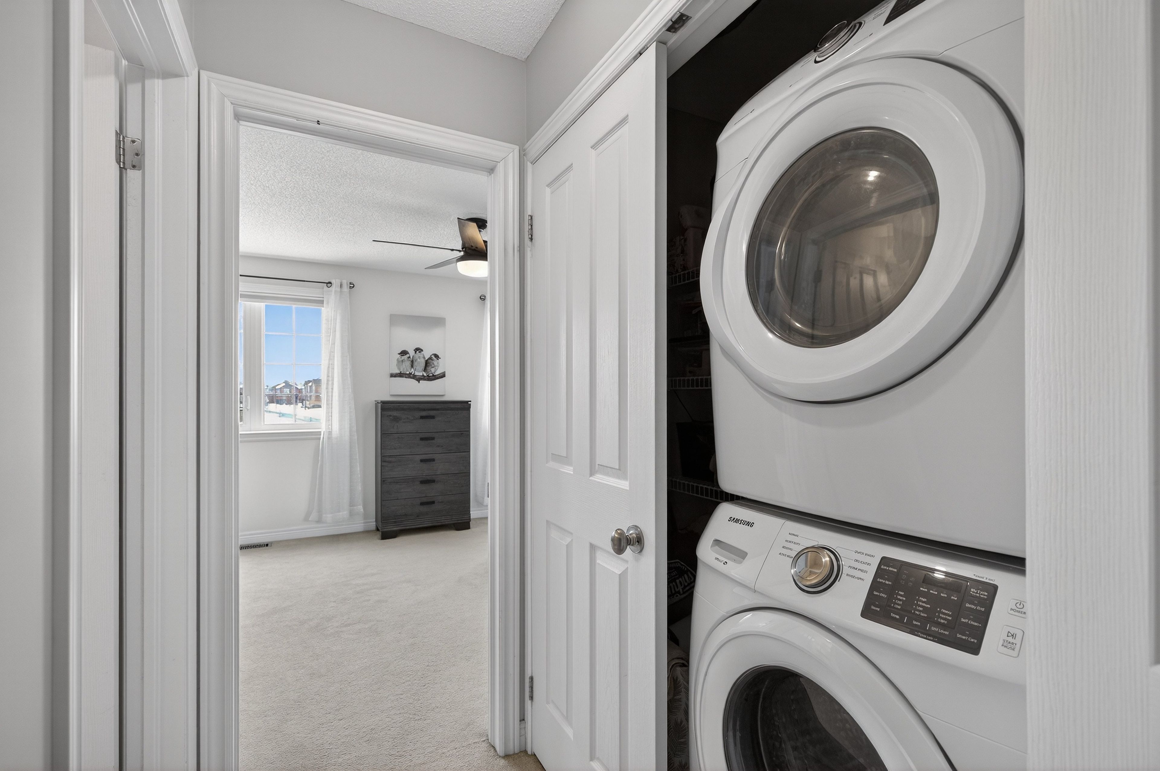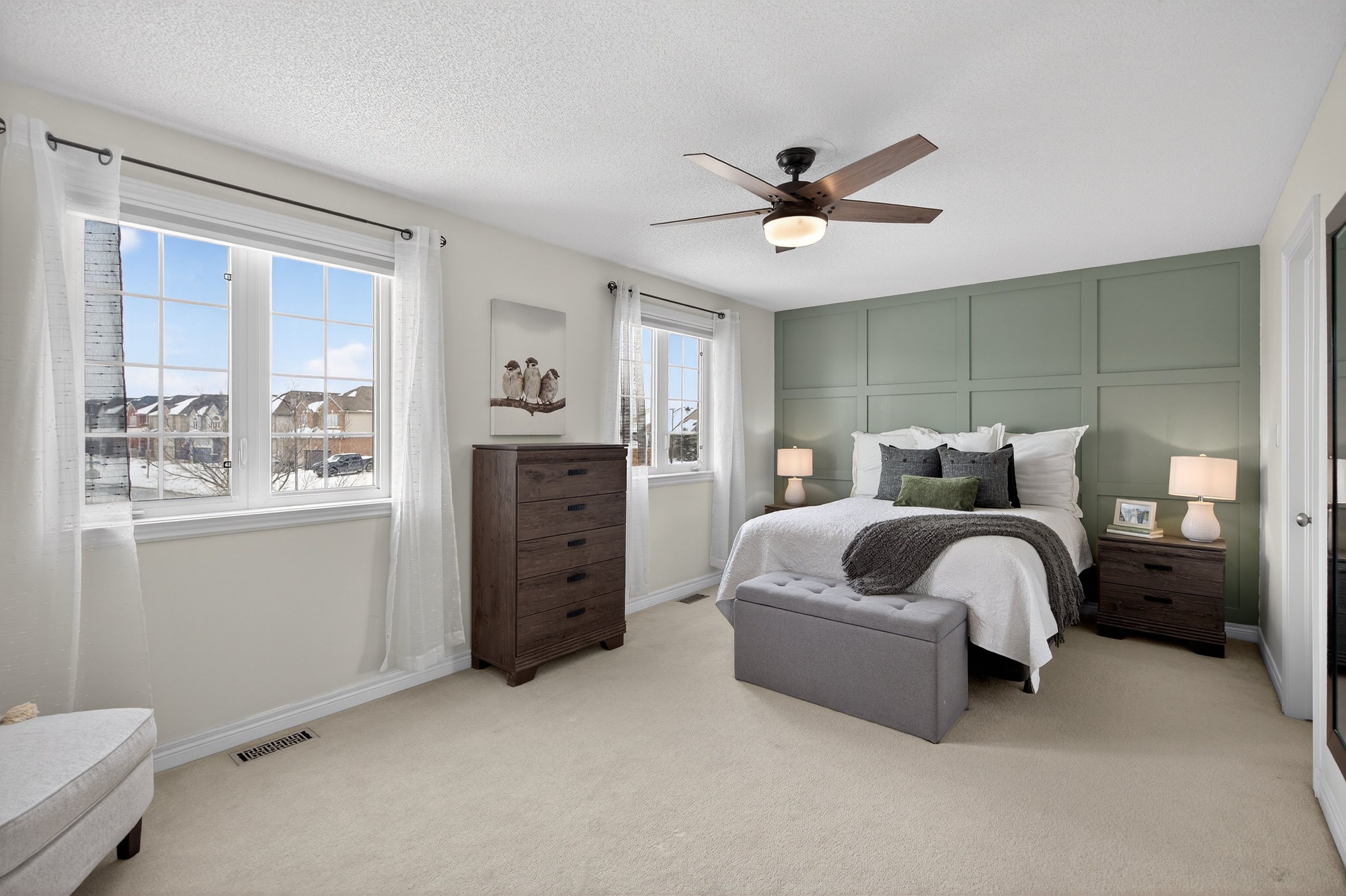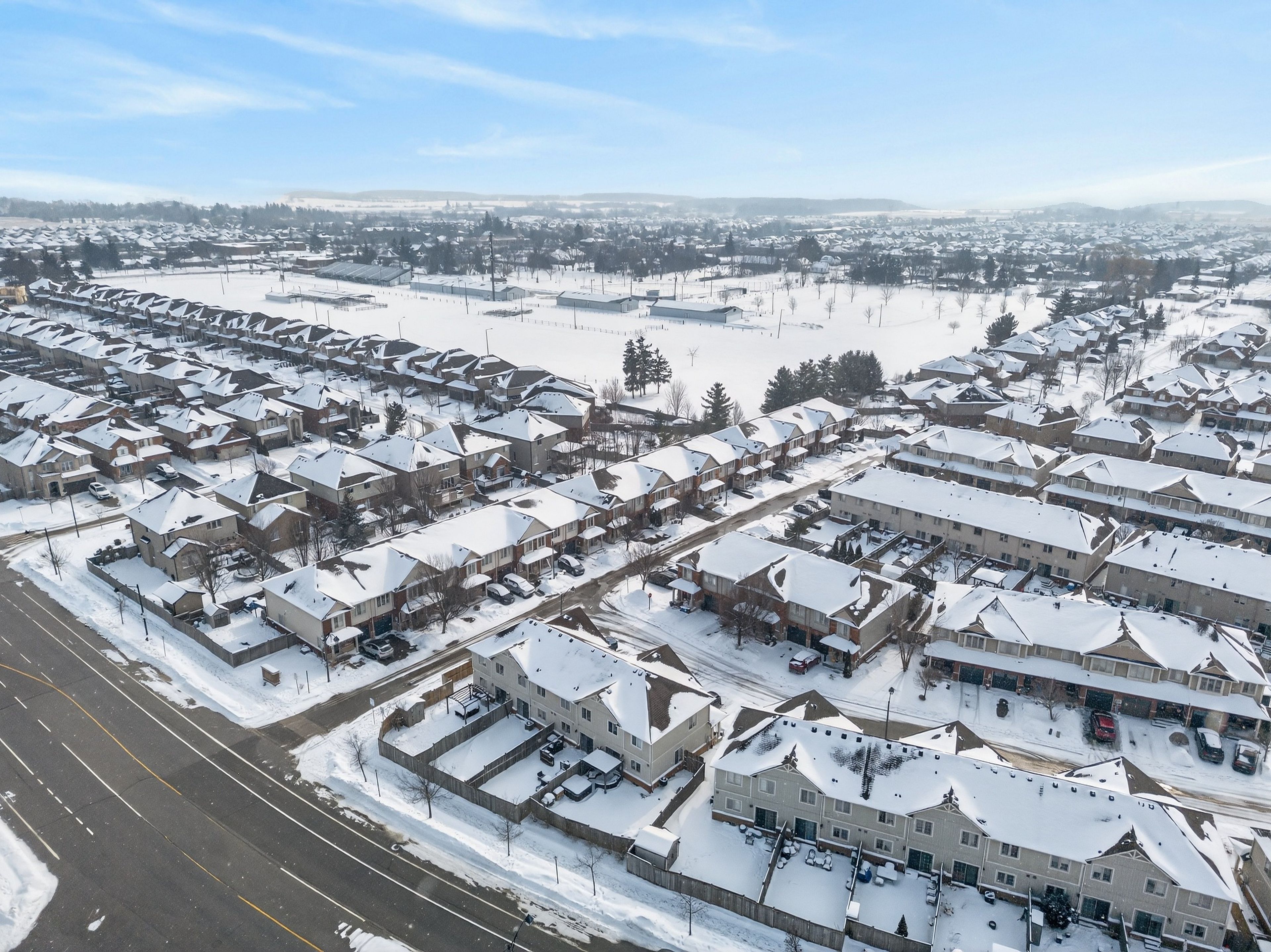 Welcome HOME to 222 Fall Fair Way #64 - an affordable freehold townhome nestled in Binbrook's desirable Country Estates community. Ideal for first-time buyers, downsizers, or investors, this stylish home combines comfort, convenience, and low-maintenance living. Offering driveway parking for one vehicle plus an additional spot in the attached garage with convenient inside entry, there's also plenty of visitors parking for your guests. The bright, open-concept main level features a modern eat-in kitchen with stainless steel appliances and a newer dishwasher, flowing into a cozy living area. Patio doors lead to a private yard (no rear neighbours!), complete with a wood deck, green space, and patio - perfect for entertaining and summer BBQs. Upstairs offers two spacious bedrooms, including an oversized primary with a walk-in closet, a 4- piece main bathroom with trendy bead-board accent, and stackable laundry with handy storage. The partially finished basement adds a rec room, 3-piece bathroom, and additional storage space. Walking distance to schools, parks, trails, shops, and amenities, with easy access to Hamilton and major routes, this home delivers comfort, space, and low-maintenance living in an established community.