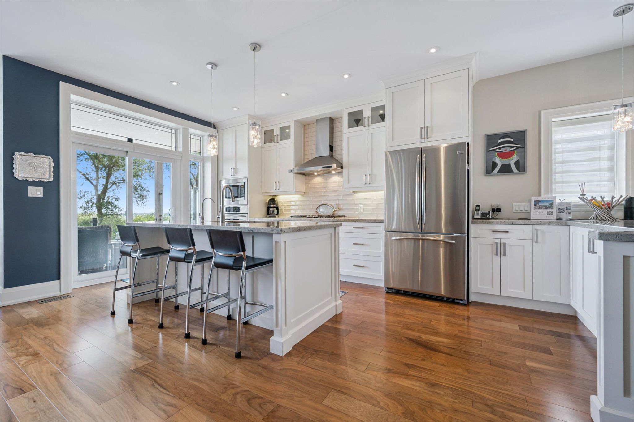 Experience waterfront living in this beautifully appointed 3-bed, 4-bath executive freehold townhome, over 3000 sq ft of thoughtfully designed living space. As a desirable end unit, it provides additional privacy, more windows for natural light, direct backyard access, and the convenience of a full two-car driveway. Enjoy stunning east-facing lake views and breathtaking sunrises from multiple vantage points, including three oversized terraces. The open-concept layout features soaring ceilings and a spacious, upgraded kitchen with an expansive island and premium stainless steel appliances, ideal for entertaining. Designed with comfort and durability in mind, this home includes 8" reinforced concrete construction through the centre for added sound separation and structural integrity. Take in uninterrupted lake views from nearly every room and enjoy direct access to the waterfront lifestyle-launch your kayak from the garage, stroll the boardwalk, or cycle along the lake to Spencer Smith Park and beyond. Ideally located steps to the beach and just minutes from downtown Burlington, with quick access to Toronto and Niagara via major highways. A rare opportunity to enjoy low-maintenance luxury living by the water.