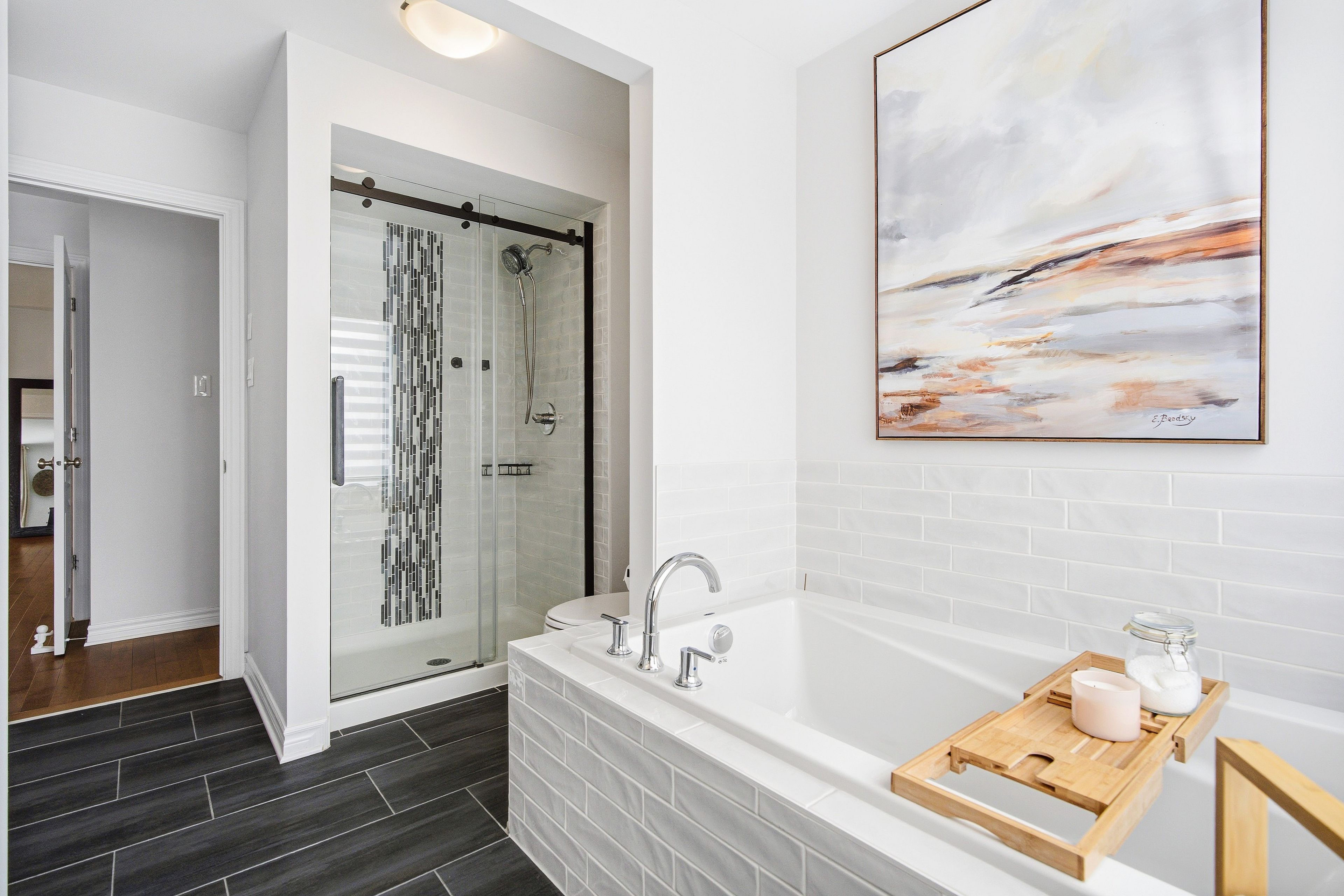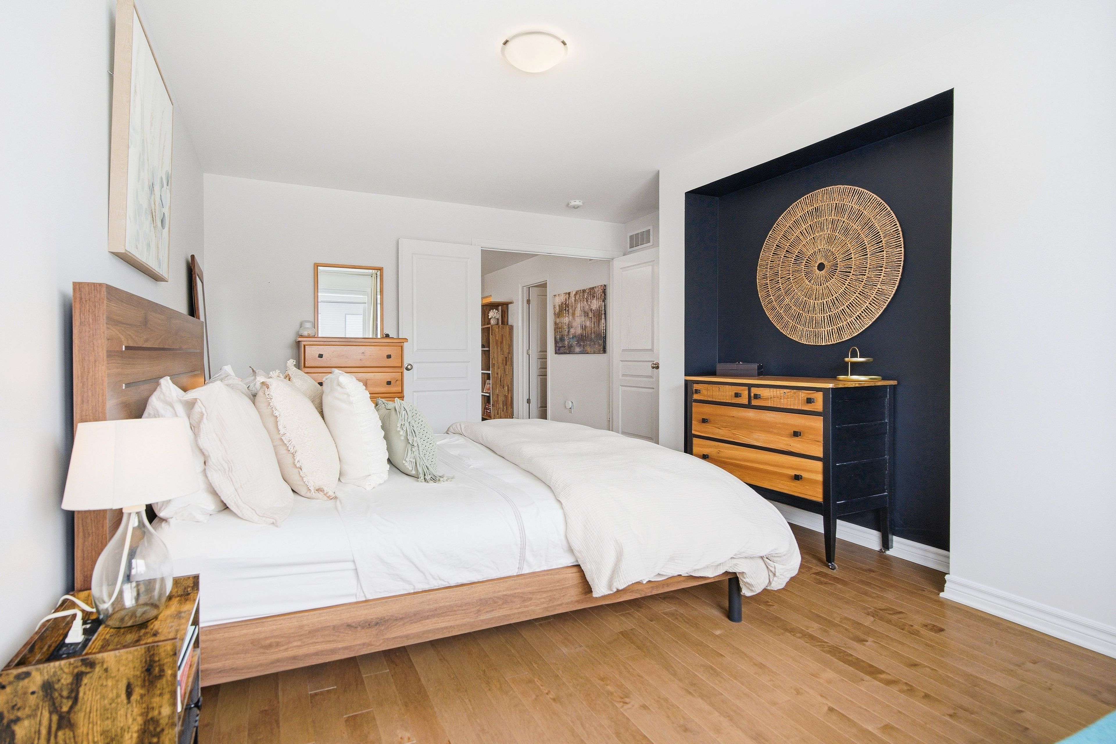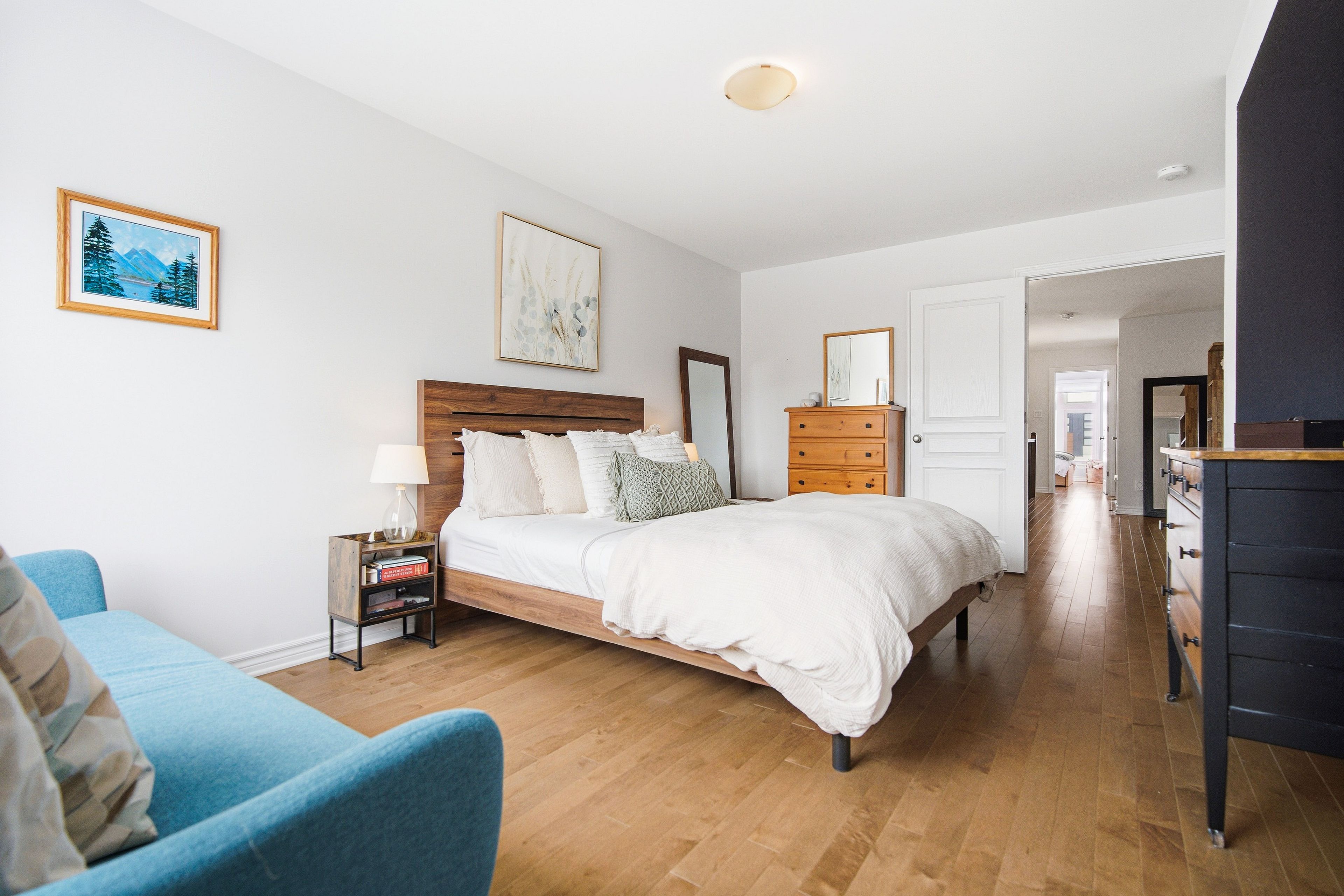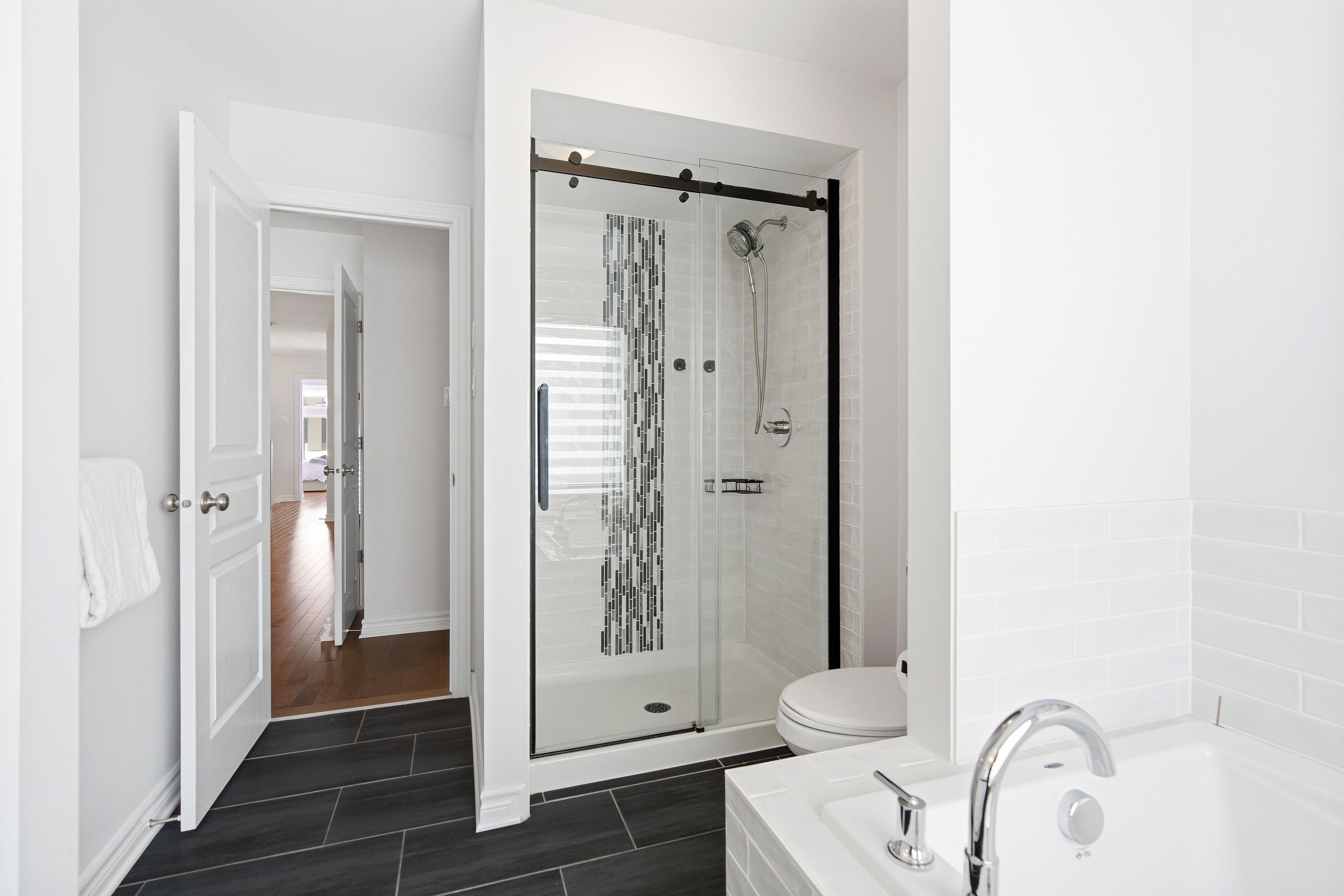 Welcome to Richcraft's largest townhome model, featuring hardwood on both the main and second levels, 3 bedrooms plus den upstairs, and a private driveway with interlock for side by side parking. Step inside from the covered porch into a bright, open concept main floor with high ceilings and large windows that fill the space with natural light. The two-toned kitchen features quartz countertops, black stainless-steel appliances, a gas range, pendant lighting, which flows seamlessly into the dining area and living room where a gas fireplace adds warmth and character. A patio door leads to the fully fenced backyard with widened back steps leading to the interlock patio, designed for easy, low maintenance outdoor living. Upstairs, the spacious primary bedroom includes a walk-in closet and a 4-piece ensuite. Two additional bedrooms, a full bathroom, a versatile den, and second floor laundry completes the level. The finished basement extends your living space with a recreation room and additional storage. Ideally located close to parks, schools, shopping, and transit, this home offers a great balance of space, function, and convenience.