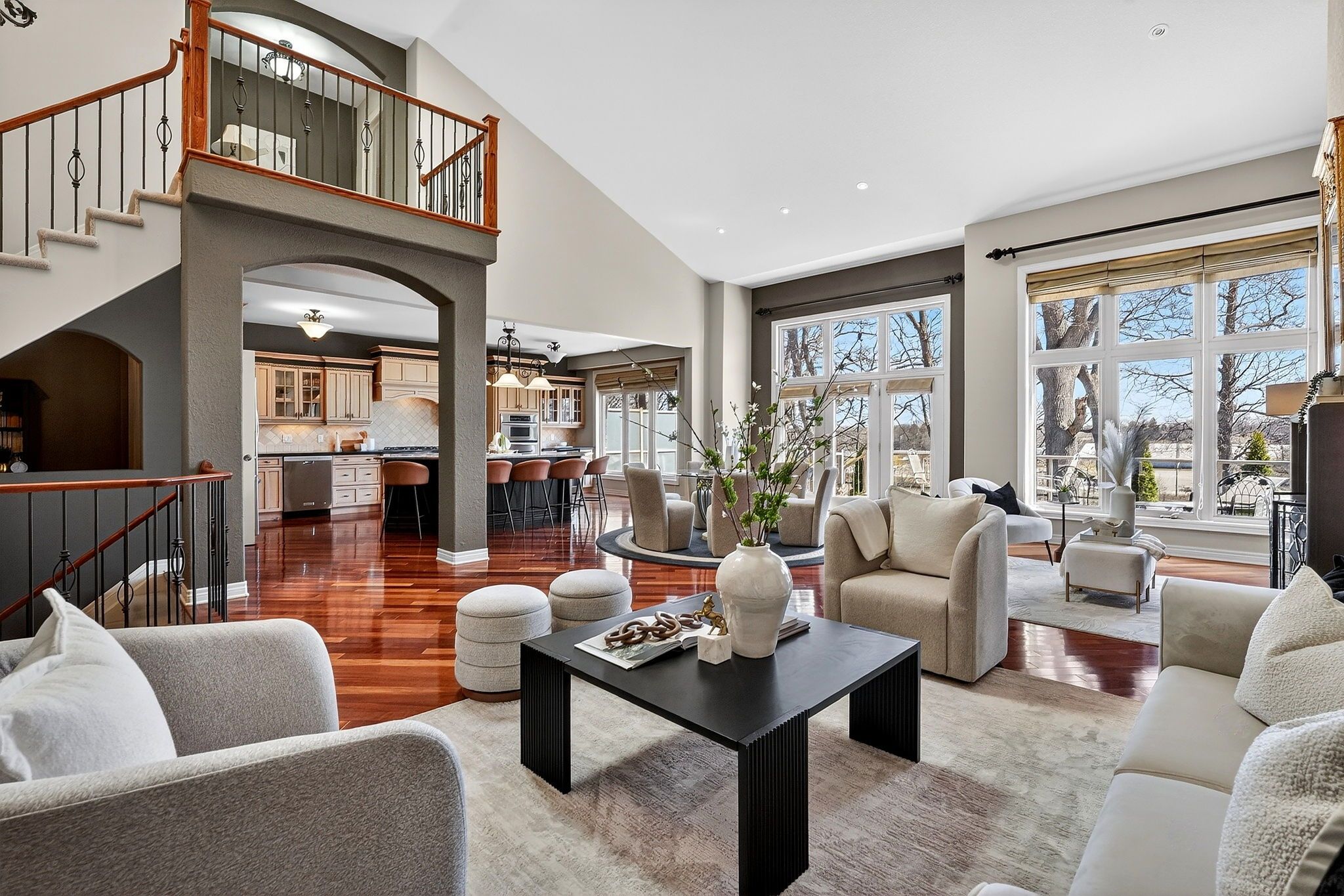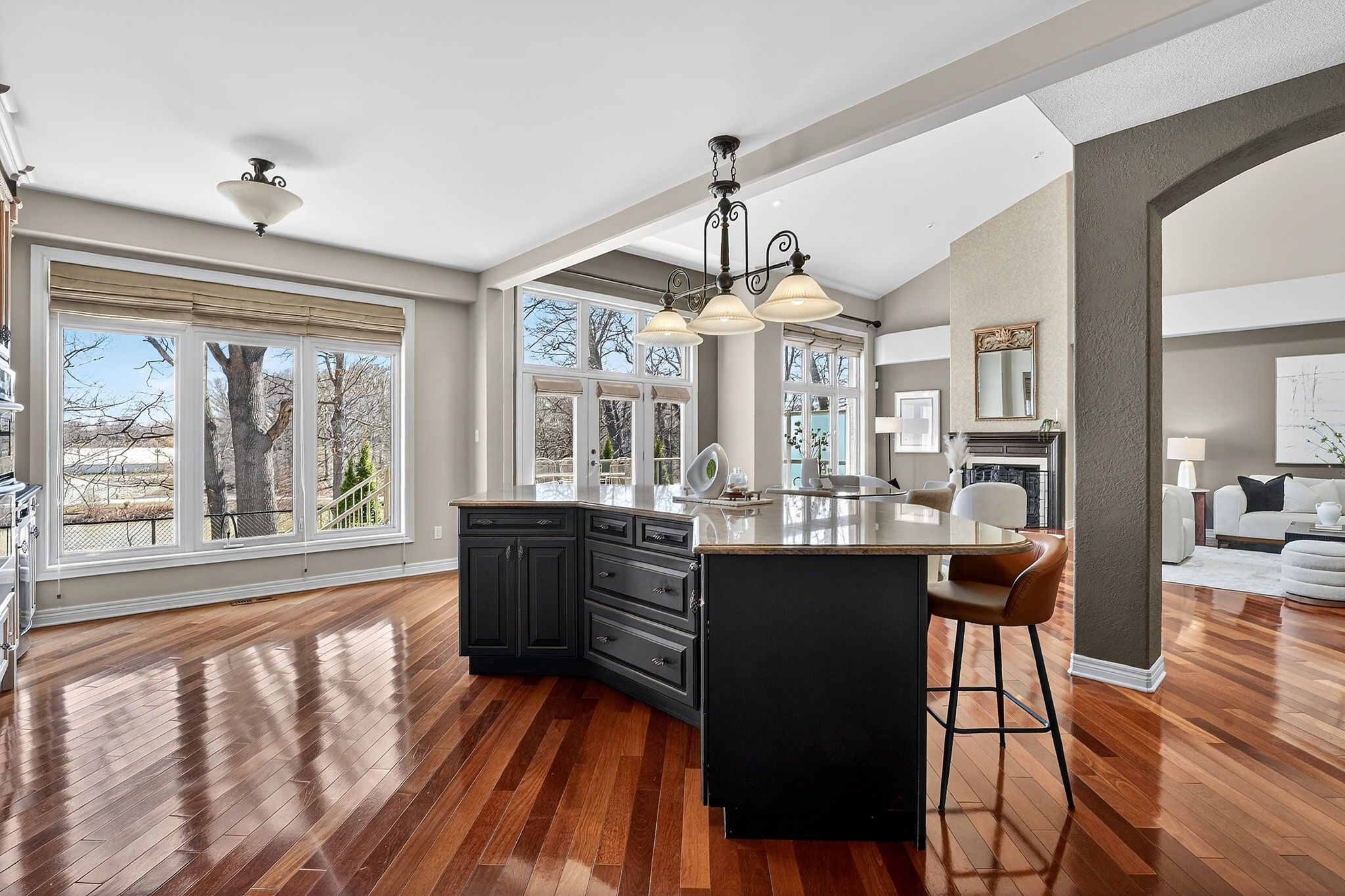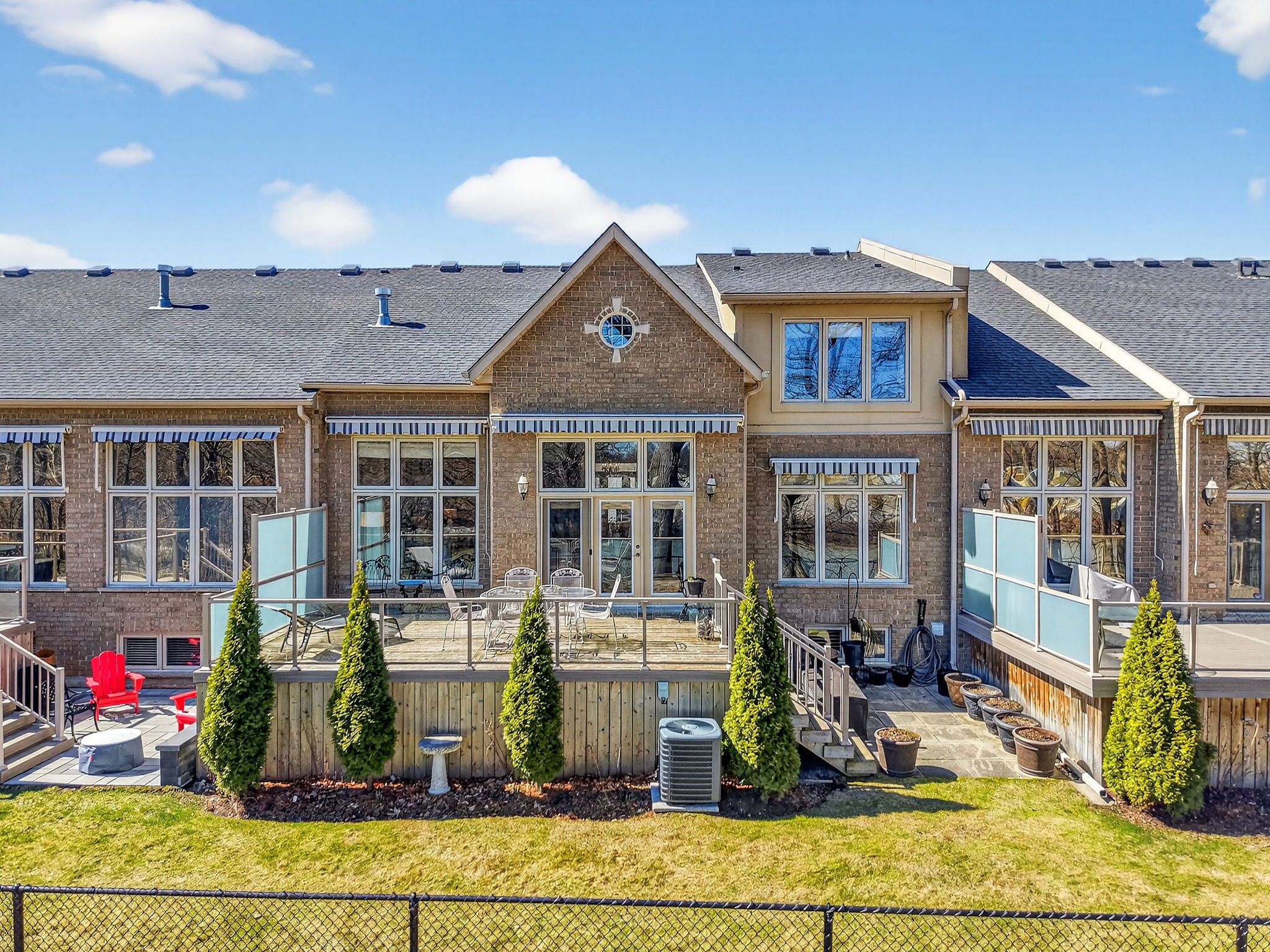 Welcome to Victory Walk in Port Dalhousie, St, Catharines - Part of an exclusive collection of luxury waterfront bungaloft townhomes, backing directly onto the Martindale Pond waterway with direct access to Lake Ontario. This executive condominium residence offers approximately 3,000+ sq.ft. of fully customized living space, thoughtfully designed for both comfort and entertaining. From the front, enjoy a beautifully landscaped yard, inviting sit-out porch, interlock driveway, double car garage and convenient guest parking. Inside, the main level in a grand entrance with impressive 18' vaulted ceilings, Brazilian Cherrywood hardwood flooring throughout and wall-to-wall windows that frame tranquil, tree-lined water views. A seamless open-concept layout connects the living, dining, and kitchen areas-featuring granite countertops, ample cabinetry, a vast central island, additional beverage fridge, skylight, and a cozy gas fireplace. A double door walk-out lead to a spacious deck with remote awnings, overlooking the waterway, Henley Island, and nearby rowing clubs. The upper-level primary bedroom is a private retreat, complete with a full walk-in closet and 3-piece ensuite. The fully finished basement expands your living options with an additional bedroom, 4-piece bath with a connecting 2-piece spa inspired room complete with bubbler tub, electric fireplace and back-lit walls. A custom bar and bonus workshop/craft room complete the space as well as a separate basement walk-out which creates an ideal potential for an in-law or multi-generational suite to explore. Experience refined waterfront living with access to local amenities, water recreation, community pool/tennis steps away, Marina's, East and West Piers, the village downtown, the "waterfront trail" out your back door, parks, minutes to wine country, 20 mins to Niagara Falls/Attractions and Casinos, Premium golf, highway access and the unmatched charm of this sought-after lakeside community.