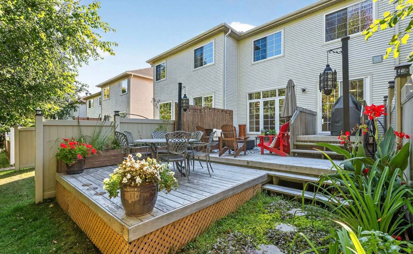 *OPEN HOUSE SATURDAY APRIL 4TH 2-4PM* Welcome to this meticulously maintained townhome evident with Pride of ownership, perfectly situated backing onto the serene Stonebridge Trail forest, offering ultimate privacy with no rear neighbours, a rare opportunity to enjoy comfort, privacy, and nature, all in one exceptional home..This bright and spacious home features 3 bedrooms & 4 bathrooms. At the heart of the home is a stunning, updated kitchen with quartz countertops and upgraded appliances, blending style and functionality for modern living.including a beautiful primary suite complete with two Large walk-in closets and Beautifully updated Ensuite. Convenient second-floor laundry adds ease to everyday living.The finished basement is filled with natural light and features a cozy fireplace and 2 Piece bath, creating the perfect space to relax or entertain. enjoy summer entertaining on a two-level deck with 350+ sq. ft. of outdoor living space and a natural gas BBQ hookup. Thoughtful updates over the past five years include the roof, furnace, A/C, main bath, ensuite flooring, and carpets. Don't miss this Gem, Schedule your showing today!! Private Road fee $120/month for common exterior maintenance
