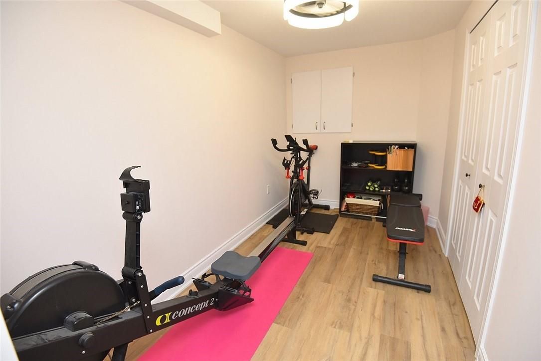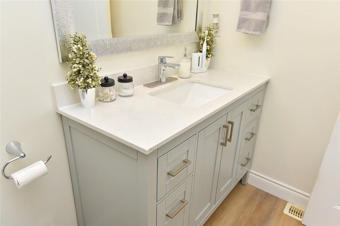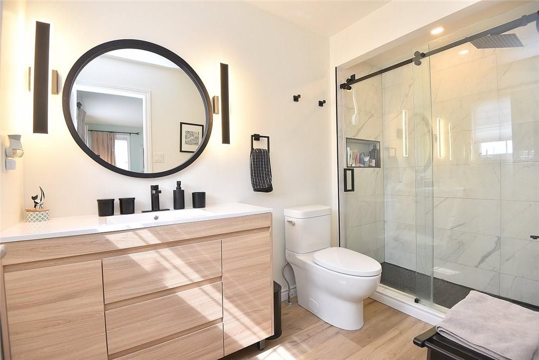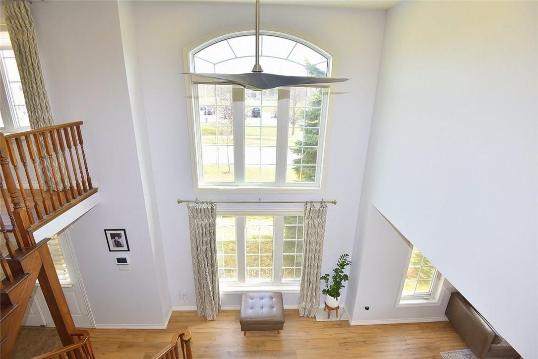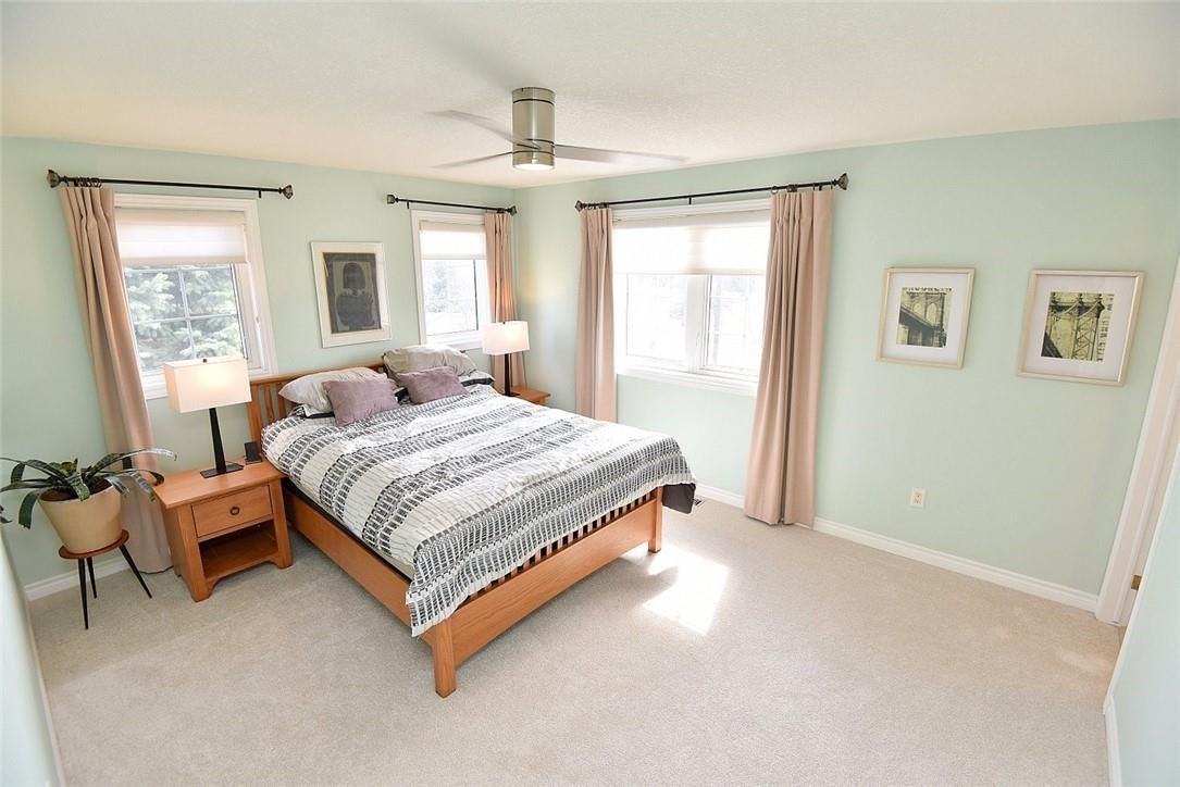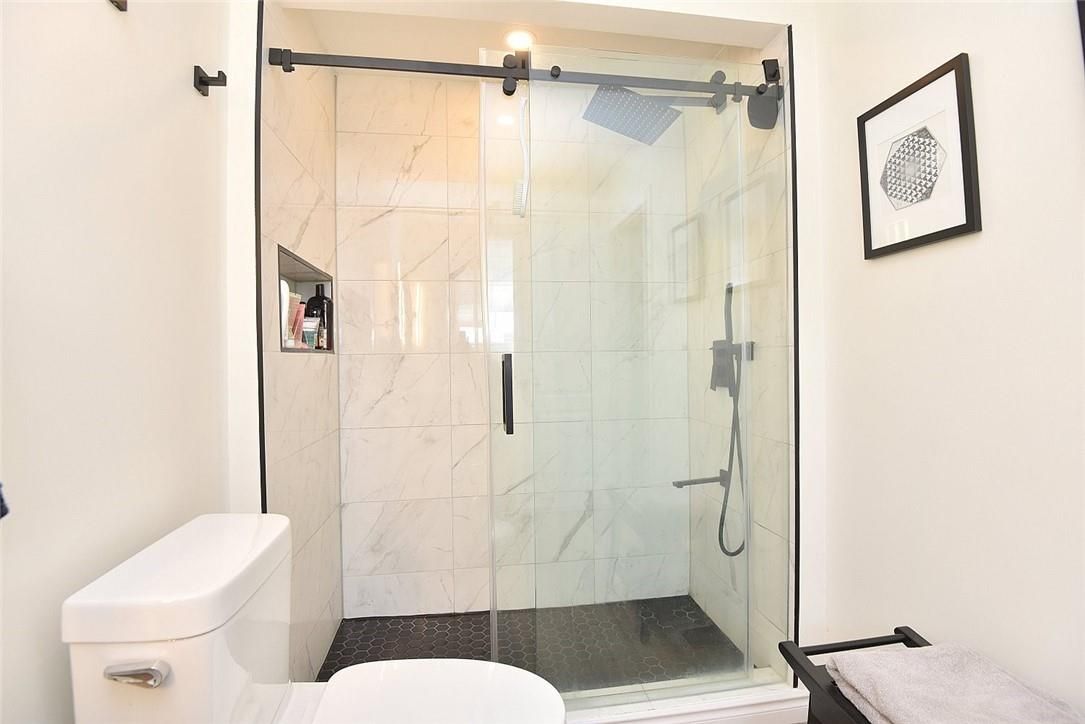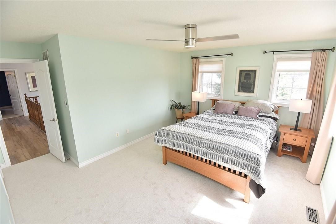 Welcome to this beautifully maintained end-unit townhome in the heart of Ancaster, offering exceptional curb appeal and an impressive amount of living space. With approximately 2,452 sq ft of finished living space (1860 sqft above grade + 592 sqft below), this home is ideal for families seeking both comfort and functionality. The main level features a grand double-door entry, elegant Palladian-style windows in the dining area, a main floor office/den, and spacious principal rooms. The updated kitchen offers granite countertops, a breakfast bar, built-in pantry cabinetry, and a bright dinette area, with convenient access to the backyard. A main floor laundry room, updated 2-piece powder room, and custom window treatments complete this level. Upstairs, the generous primary suite includes a beautifully updated ensuite, complemented by two additional bedrooms and a recently renovated 4-piece family bathroom with quality finishes. Newer broadloom adds warmth throughout the second level. The finished lower level provides additional living space with a family room featuring built-in shelving/entertainment unit, a home office area, gym space, and a 2-piece bathroom. Enjoy a fully landscaped, fenced backyard with a composite deck, stone patio, and gated access-perfect for outdoor living and entertaining. Ideally located close to downtown Ancaster, parks, schools including Bishop Tonnos, highway access, and everyday amenities.