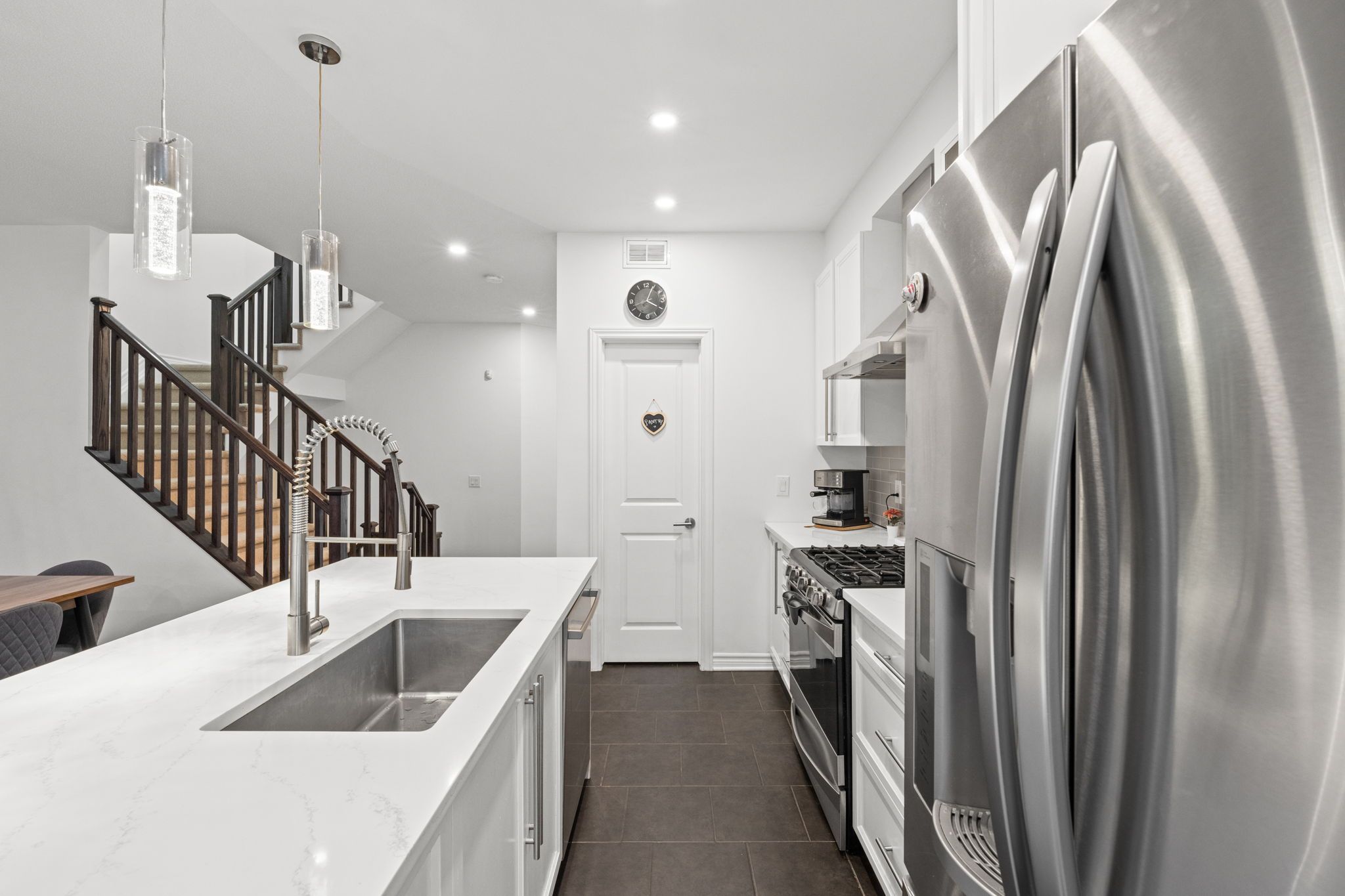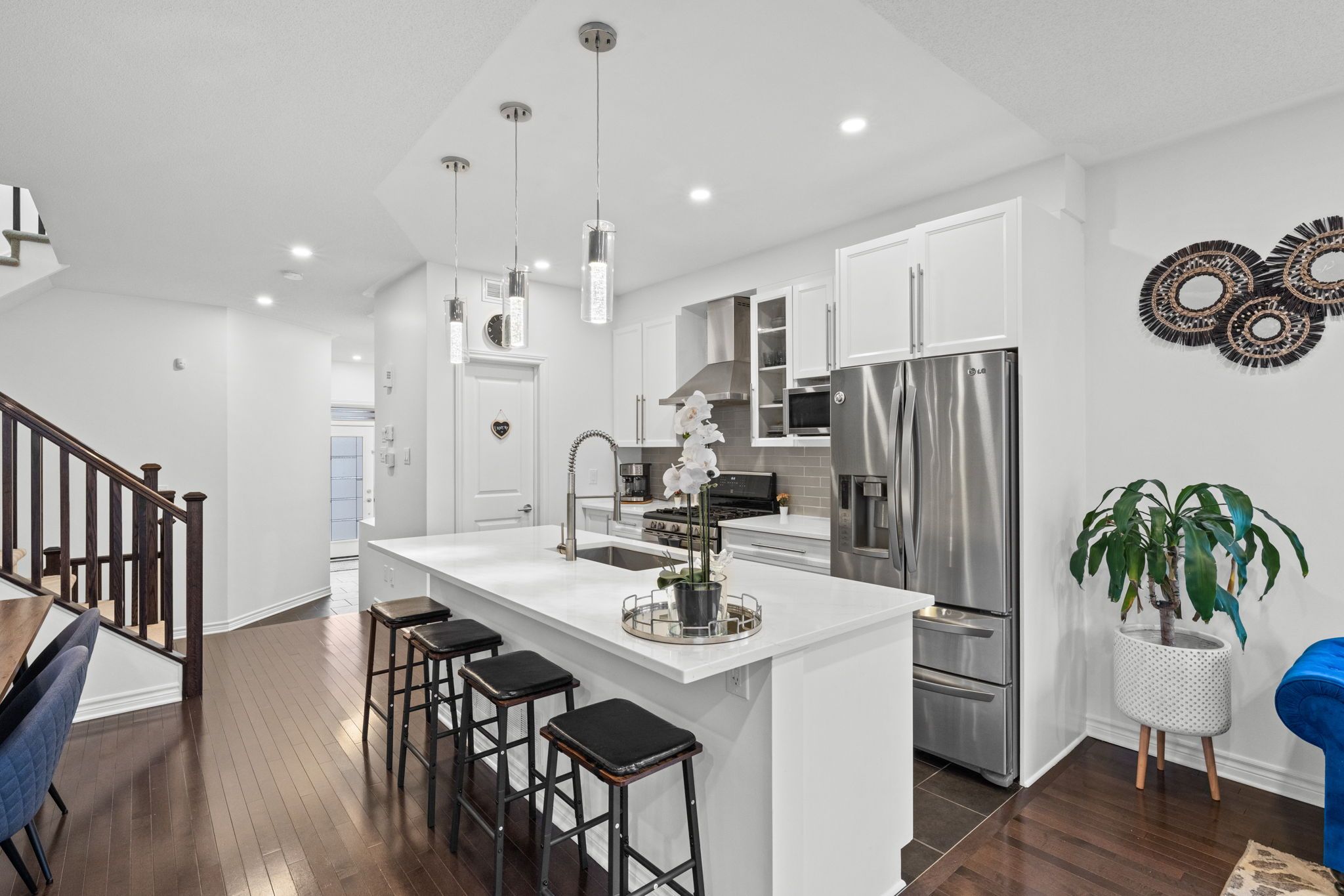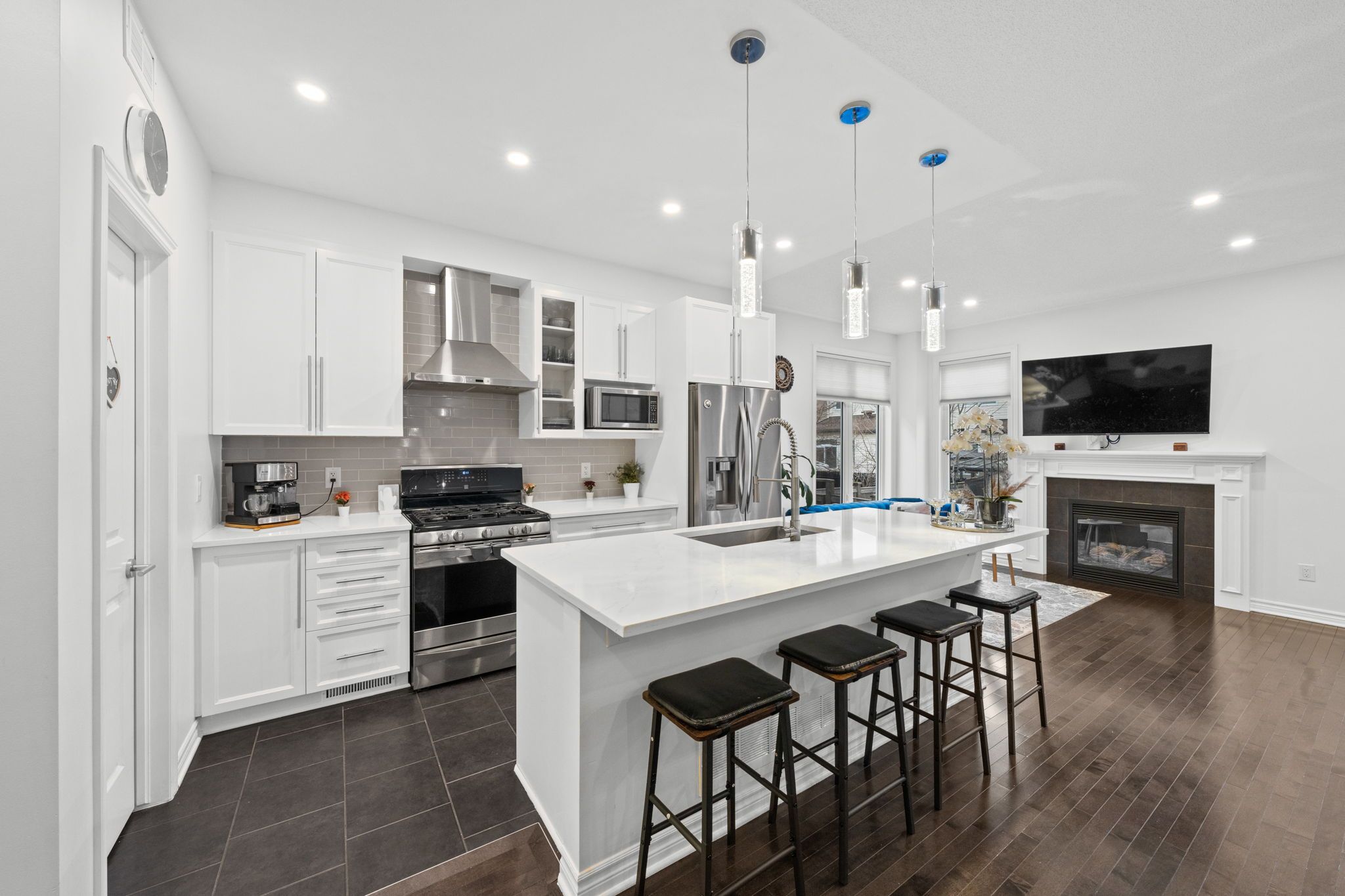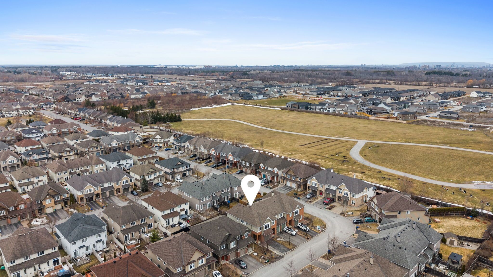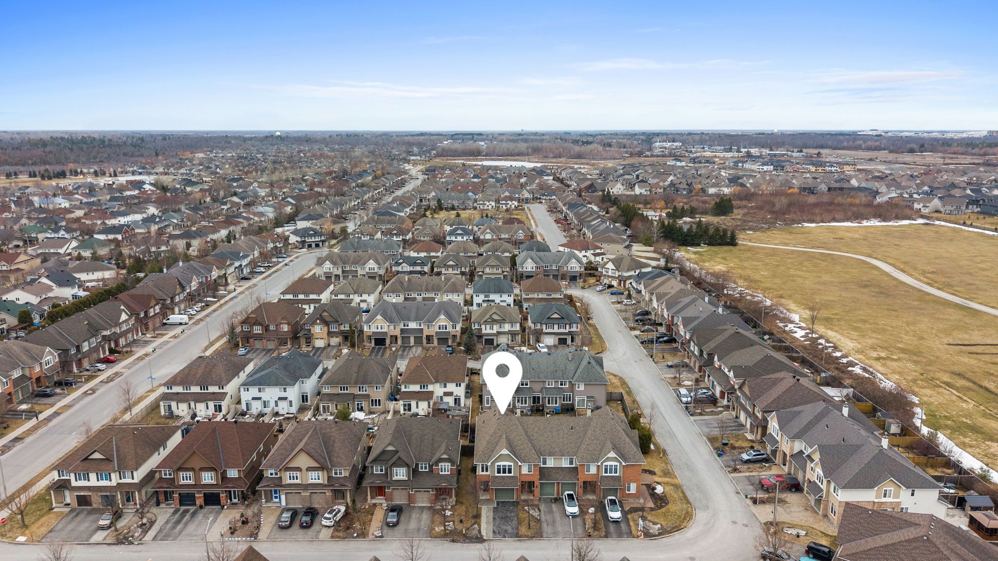 Welcome to this rarely offered Tamarack Huntington end-unit townhome in the desirable Findlay Creek community. Offering over 2,100 sq ft of beautifully finished living space including approximately 411 sq ft in the fully finished basement, this modern and meticulously maintained home features over $70,000 in upgrades. The bright open-concept main floor showcases 9-foot ceilings, elegant hardwood floors, a cozy gas fireplace, and a stunning modern kitchen with upgraded stone countertops, centre island, gas range, pantry, and stylish finishes - perfect for both everyday living and entertaining. Upstairs you will find a spacious primary retreat with walk-in closet and a luxurious 5-piece ensuite with dual sinks and glass shower, along with two additional well-sized bedrooms, a versatile loft space, full bathroom, and convenient second-floor laundry. The finished basement provides a large and flexible recreation area ideal for a family room, home office, or gym, with additional storage space. Additional highlights include fresh full-home paint, modern finishes throughout, an attached garage with inside entry, central air conditioning, and an oversized driveway offering generous parking space. Ideally located close to parks, schools, shopping, nature trails, and transit, this move-in-ready home offers the perfect combination of style, comfort, and convenience in one of Ottawa's most sought-after communities.
