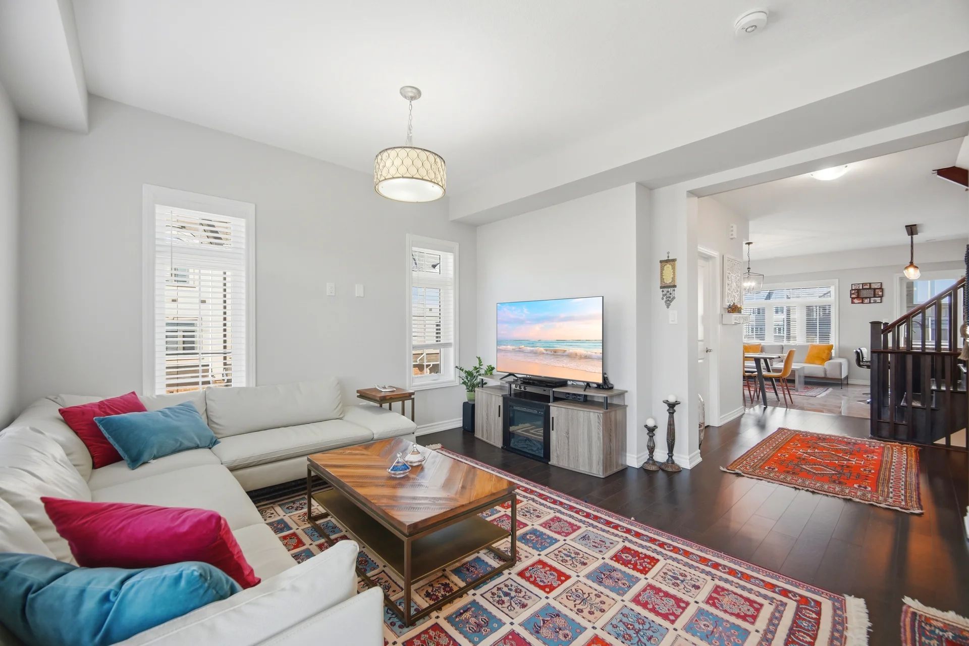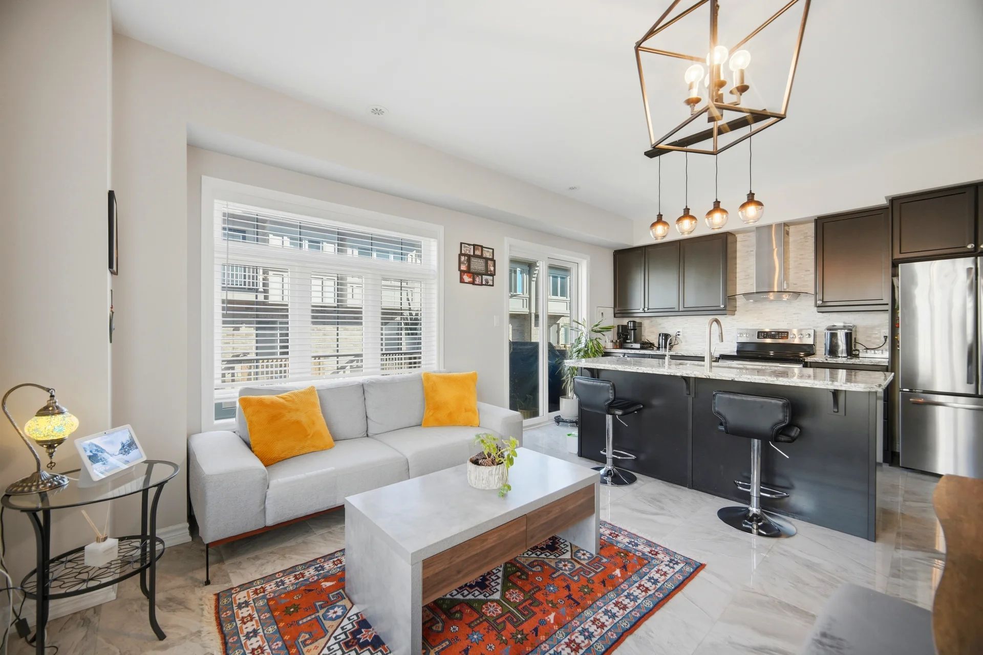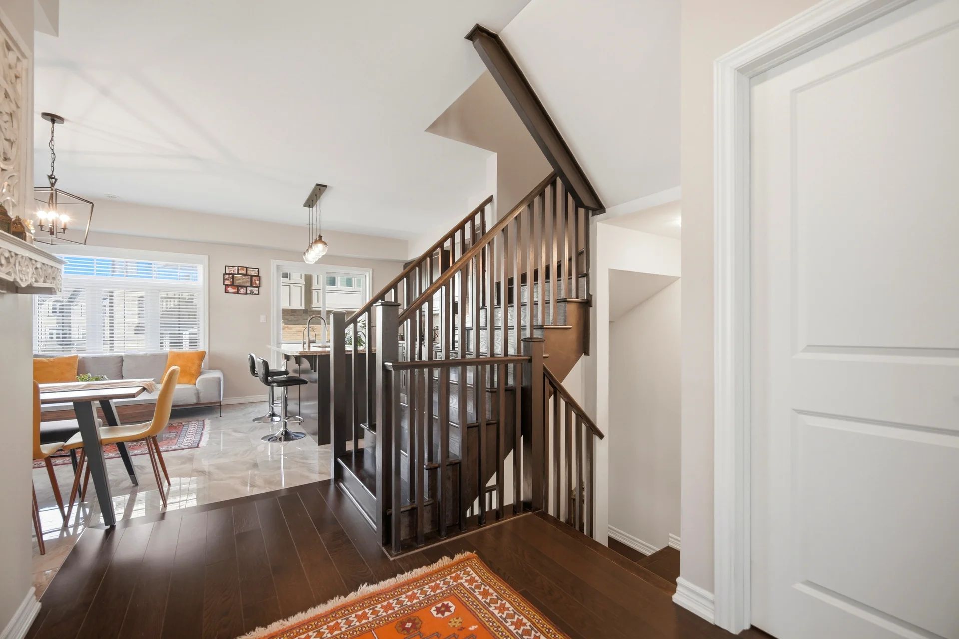 This stunning freehold corner townhouse in desirable Waterdown West offers over 2,300 sq. ft. of beautifully finished living space and showcases more than $50,000 in premium upgrades making it one of the most refined homes in the community. From the moment you step inside, you'll notice the exceptional attention to detail. The ground level features a bright recreation room with walk-out access to the backyard, along with a versatile den that can easily function as a home office or additional bedroom perfect for today's flexible lifestyle. The main level impresses with 9-foot ceilings, oversized windows, and elegant hardwood flooring throughout, creating a bright and open atmosphere. The upgraded interior doors further elevate the home's modern appeal. Designed with both style and function in mind, the chef-inspired kitchen boasts stainless steel appliances, a large granite island, upgraded cabinetry, and sleek modern hardware and fixture ideal for entertaining or everyday living. Thoughtful upgrades such as custom closet organizers and roll-down blinds throughout add both convenience and sophistication. Step outside to your private backyard retreat, professionally landscaped with a custom wood privacy fence and interlock patio perfect for relaxing or hosting guests. Ideally located next to the scenic Borers Creek Trail and just minutes from downtown Waterdown's charming shops and restaurants, this home also offers easy access to parks, trails, Highway 403, and the GO Station. Property additional features includes central vacuum, ethernet installations and cable points all installed by the builder.