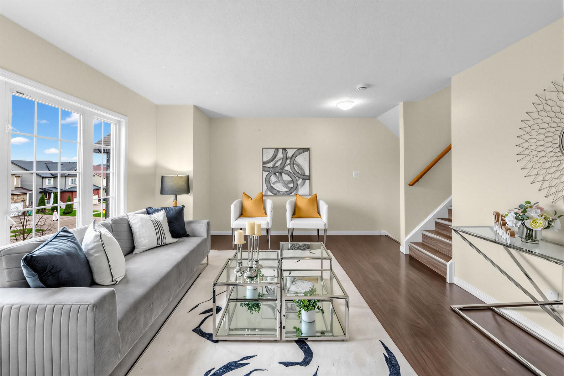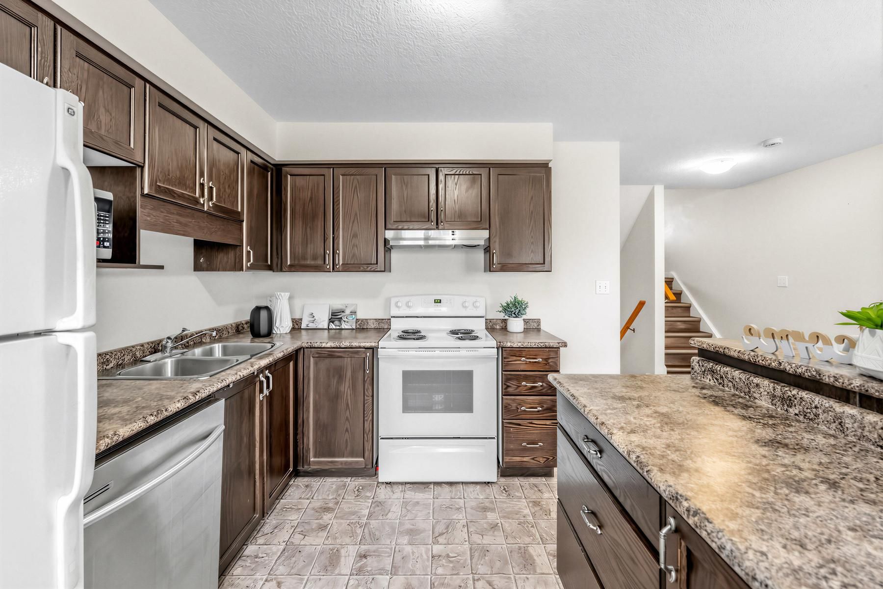 Welcome to1383 COUNTRYSTONE Drive, a thoughtfully designed freehold backsplit townhouse offering an ideal blend of functional living and everyday comfort in a sought-after community. With shops, restaurants, parks, and major amenities just steps away, while the University of Waterloo and Wilfrid Laurier University are only minutes away, plus quick access to transit and highways, this home puts convenience at your fingertips.The main living area is perfectly laid out for both daily life and entertaining. The separate kitchen, complete with ample cabinetry and counter space, provides a dedicated zone for meal prep, while the large, bright living room offers a spacious gathering area with clear separation from the kitchen-ideal for hosting or quiet evenings at home.The home features four generous bedrooms across multiple levels, making it perfect for growing families. On the upper floors, two well-sized bedrooms share a full bathroom, offering flexibility for kids or guests. The top floor hosts a spacious primary bedroom retreat, with a quiet, private atmosphere and excellent soundproofing.The lower level adds even more versatility, with a bright bedroom and its own full bathroom. This space works beautifully as a fourth bedroom, a guest suite, or a family recreation room, adapting easily to your household's needs. With three full bathrooms total, morning routines are seamless for the whole family.Move-in ready and available for immediate possession, this home offers a rare combination of a practical multi-level layout, flexible living space, and a prime location. It's an exceptional choice for buyers prioritizing comfort, convenience, and long-term value.